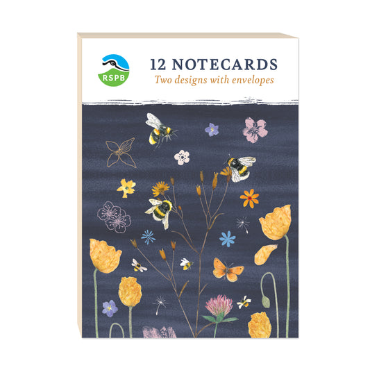 RSPB Beyond The Hedgerow Stationery - A6 Notecard Pack (12 Cards) - Bees Amongst Flowers