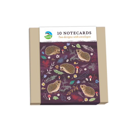 RSPB Beyond The Hedgerow Stationery - Square Notecard Pack (10 Cards) - Hedgehogs Leaves