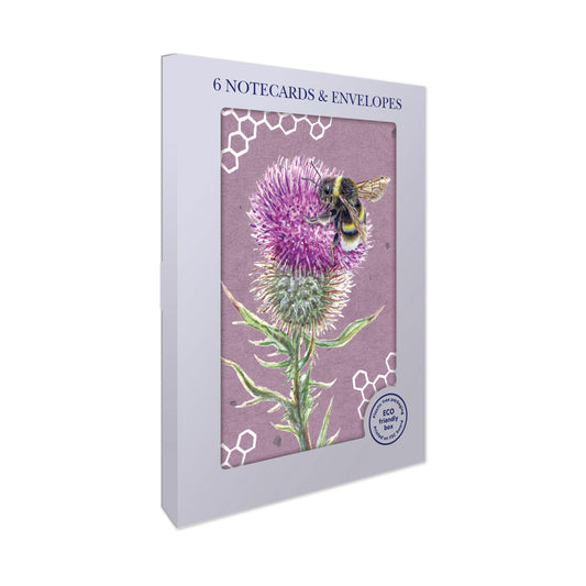 RSPB Beyond The Hedgerow Stationery - A6 Notecard Pack (12 Cards) - Bees Amongst Flowers