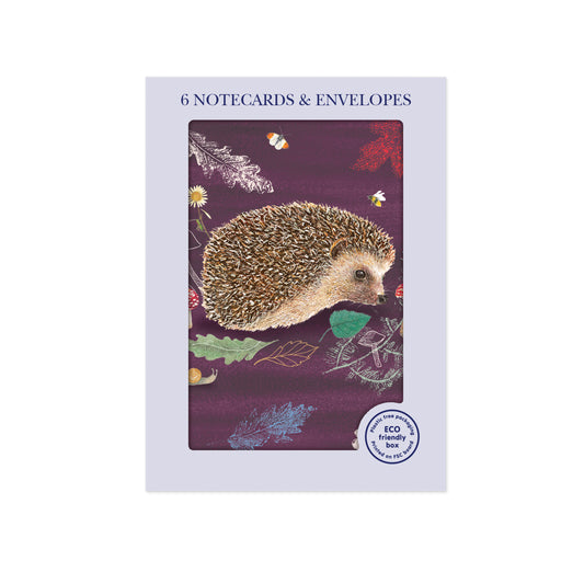 RSPB Beyond The Hedgerow Stationery - Square Notecard Pack (10 Cards) - Hedgehogs Leaves