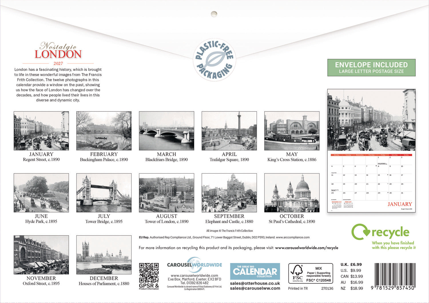 Nostalgic London A4 Calendar 2027
