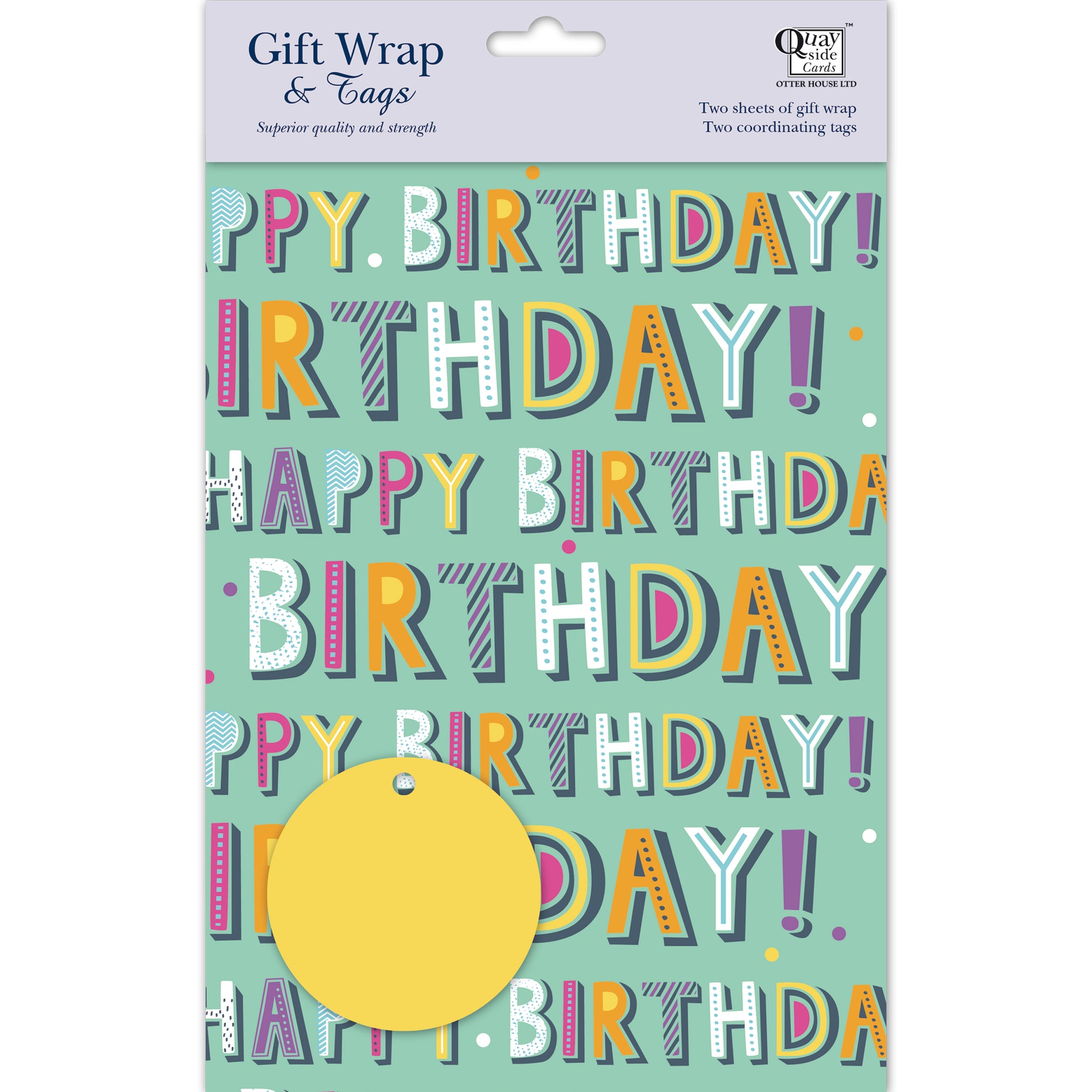 Gift Wrap & Tags - Happy Birthday Text (2 Sheets & 2 Tags)