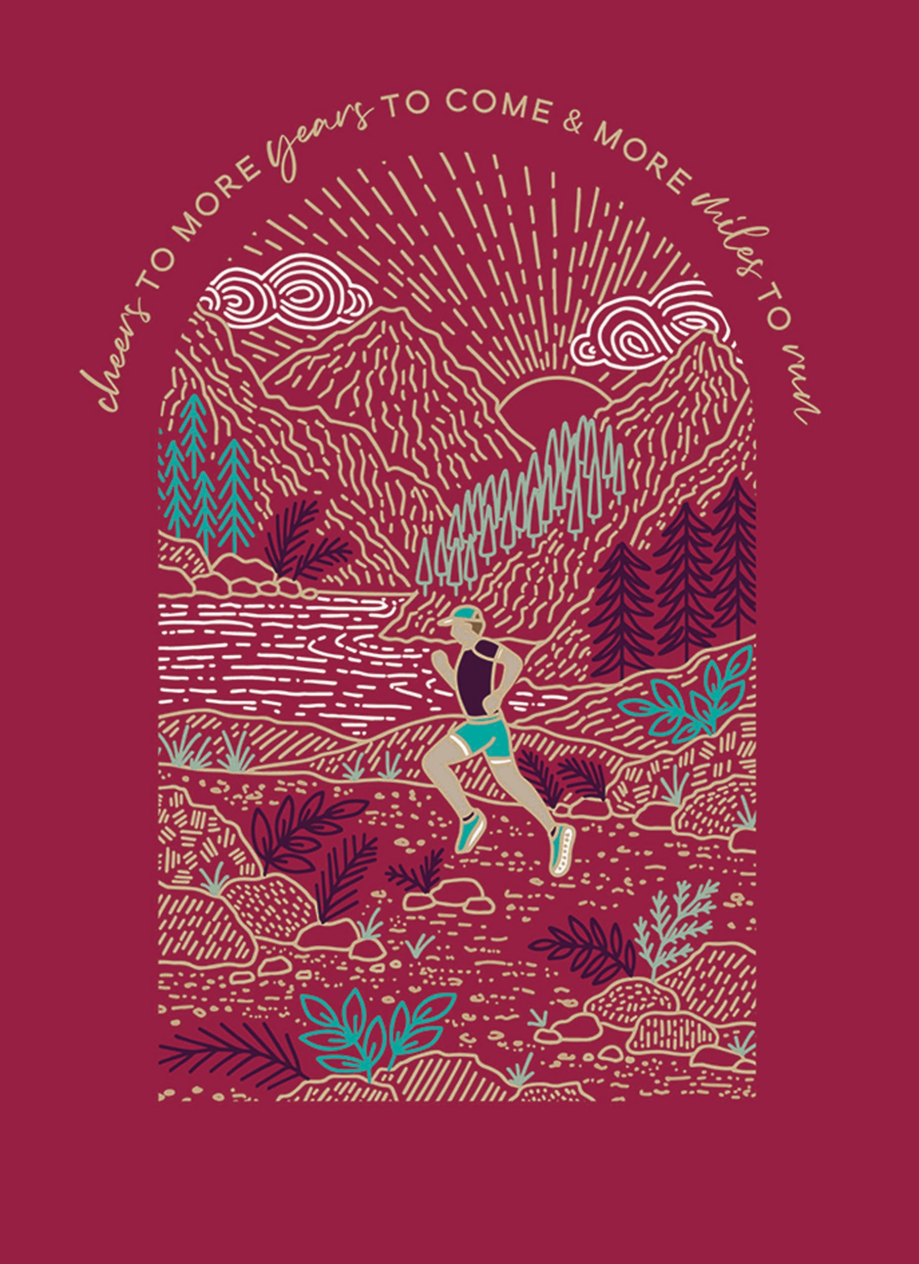- Message On Front: cheers TO MORE years TO COME & MORE miles TO run