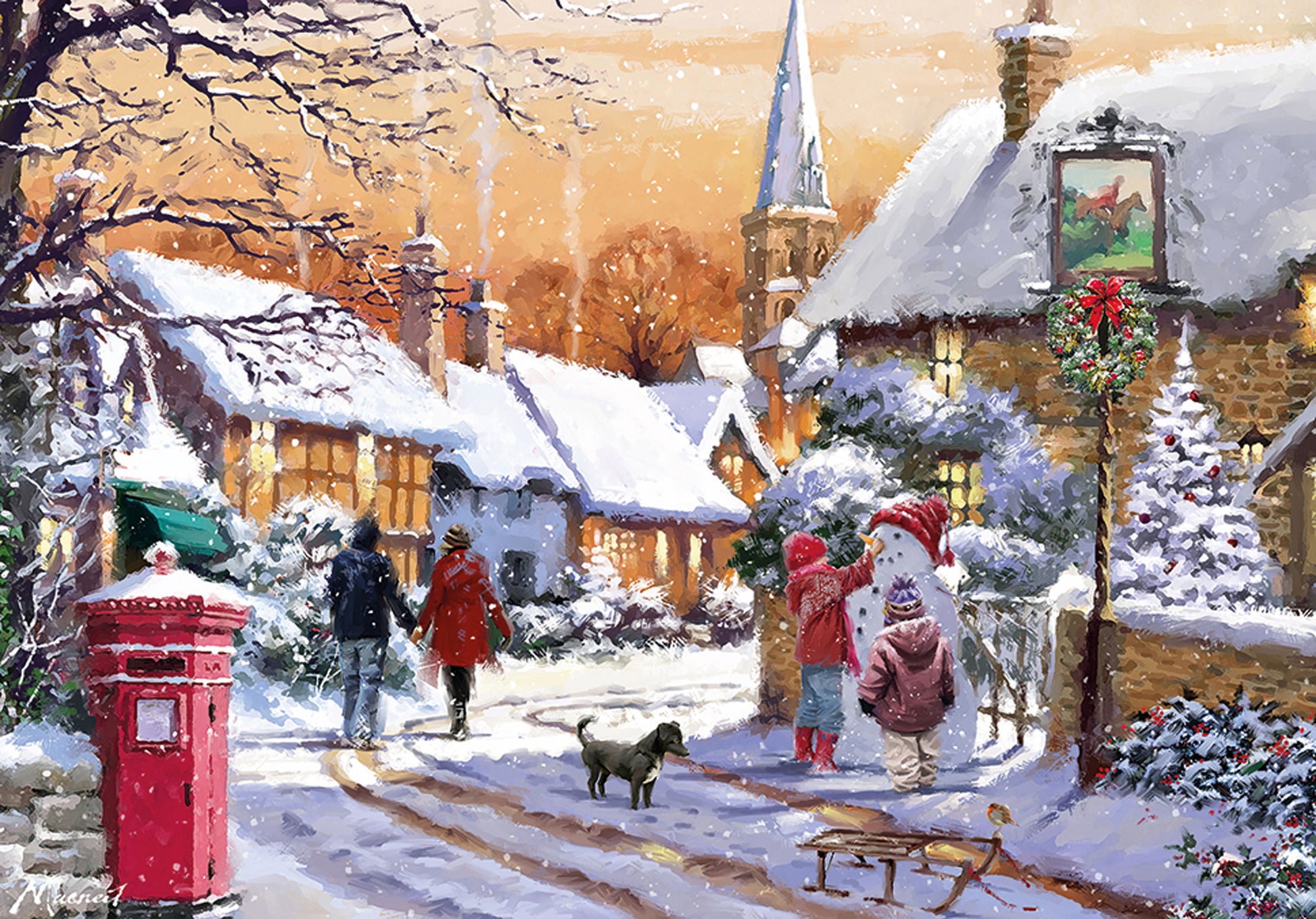 Embrace the tranquil joy of a winter evening with our 500 Piece Jigsaw - Sunset Stroll. This beautifully illustrated puzzle captures a serene scene of families enjoying a snowy stroll through a charming village. As you piece together this delightful image, you'll find a moment of peace and relaxation, perfect for unwinding after a busy day. The soft hues of the sunset and the gentle touch of falling snow create an inviting atmosphere that is sure to warm your heart.