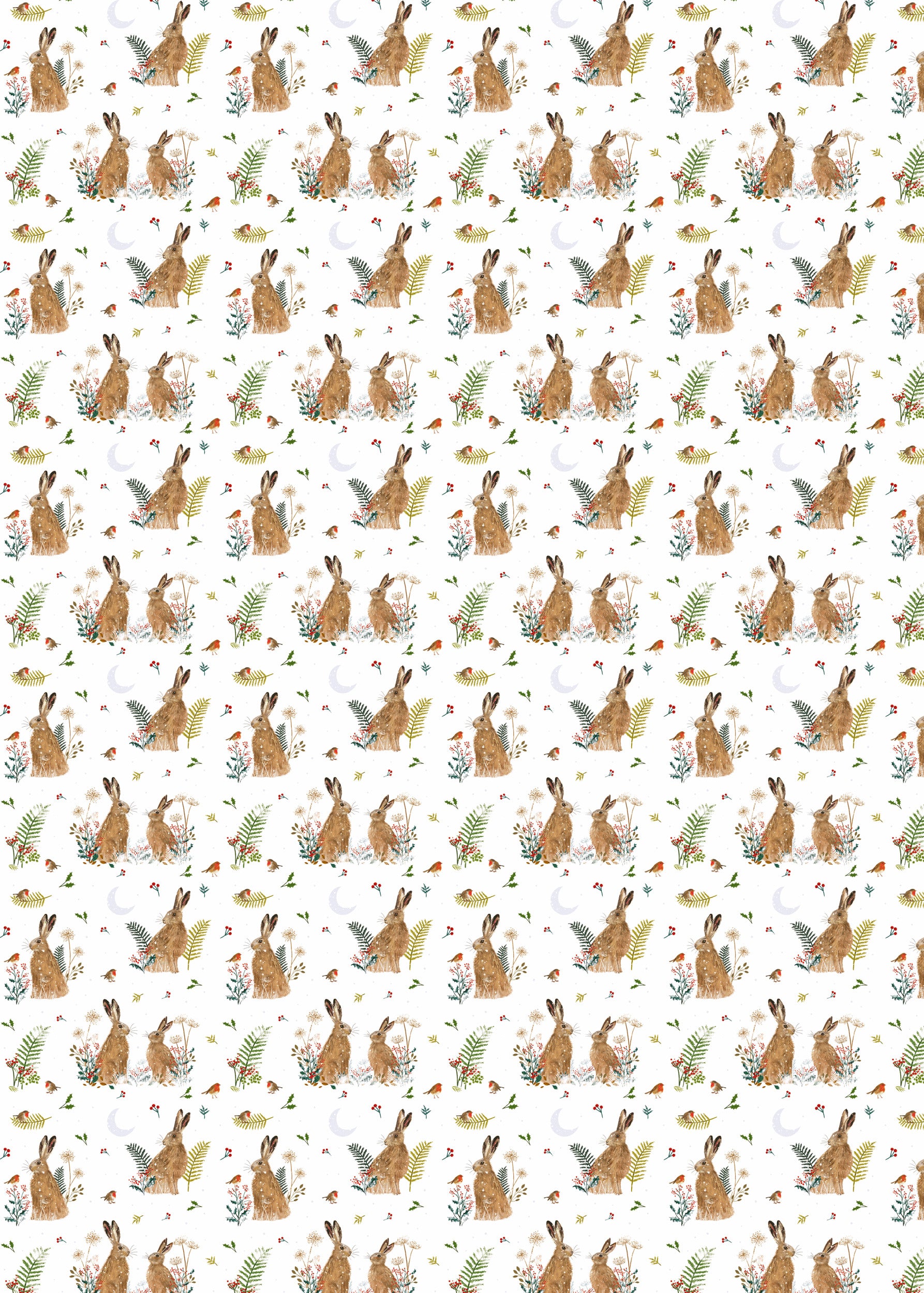 Christmas Wrap & Tags - Wintry Hares (5 Sheets & 5 Tags)
