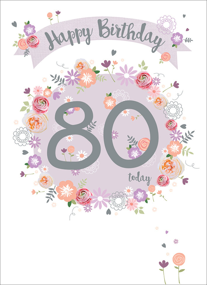 Age To Celebrate Card - 80 Floral & Banner