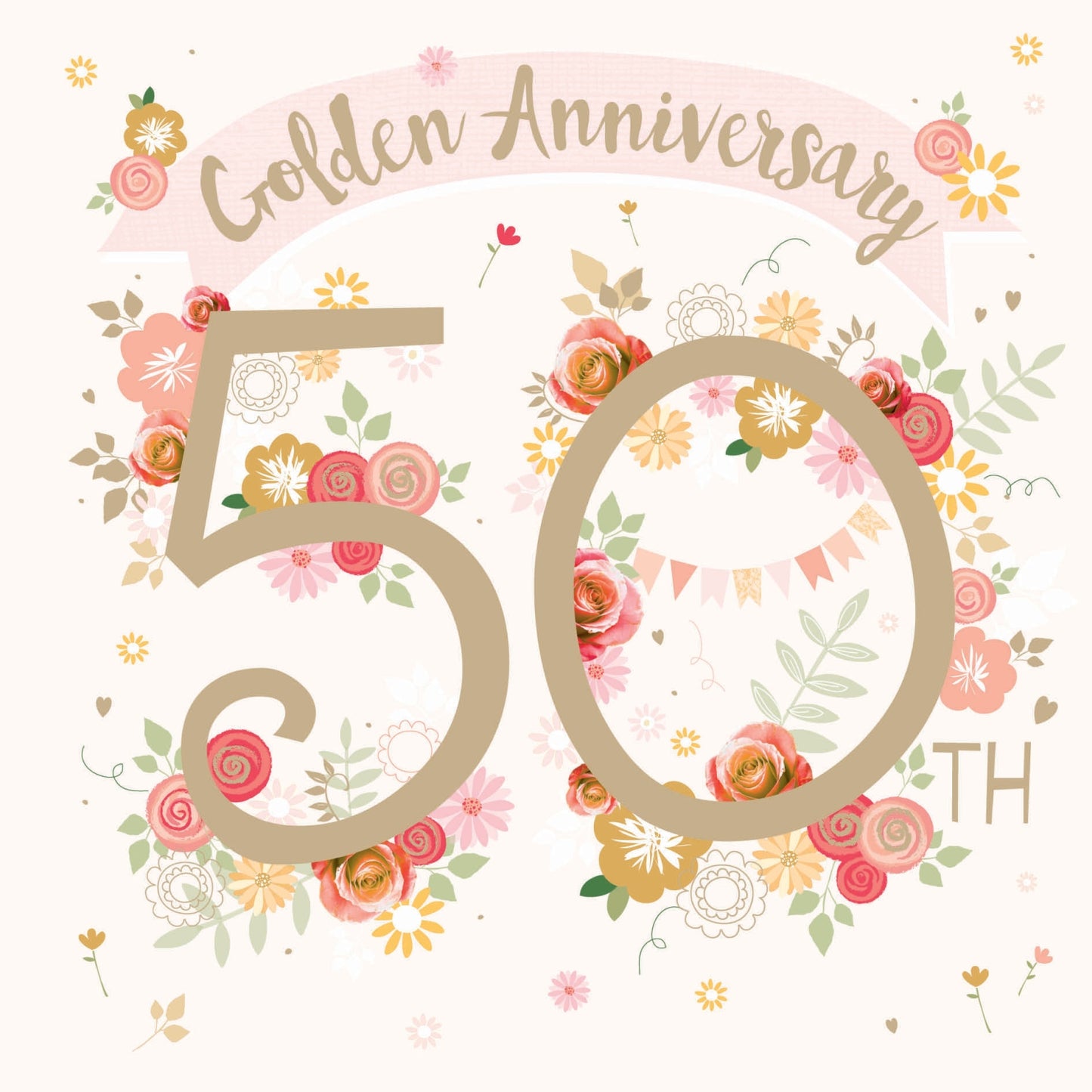 Anniversary Card - Floral 50th (Your Gold Anniversary)