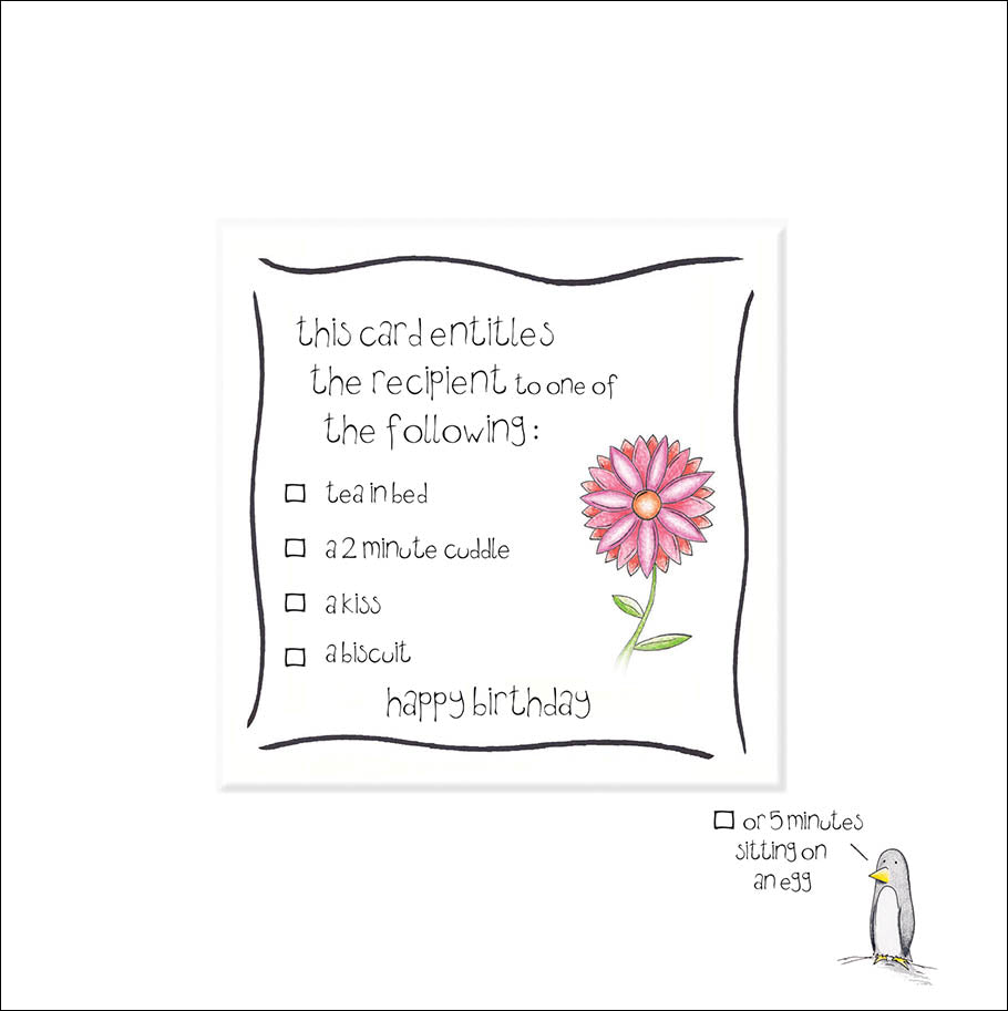 A light hearted greetings card featuring a humourous design by Alec's cards.