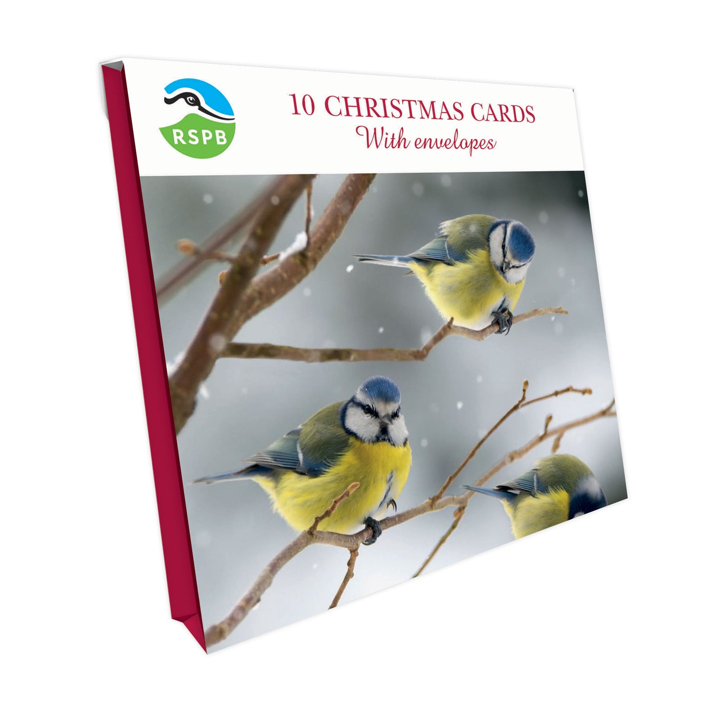 Blue Tits on Branches - RSPB Small Square Christmas 10 Card Pack