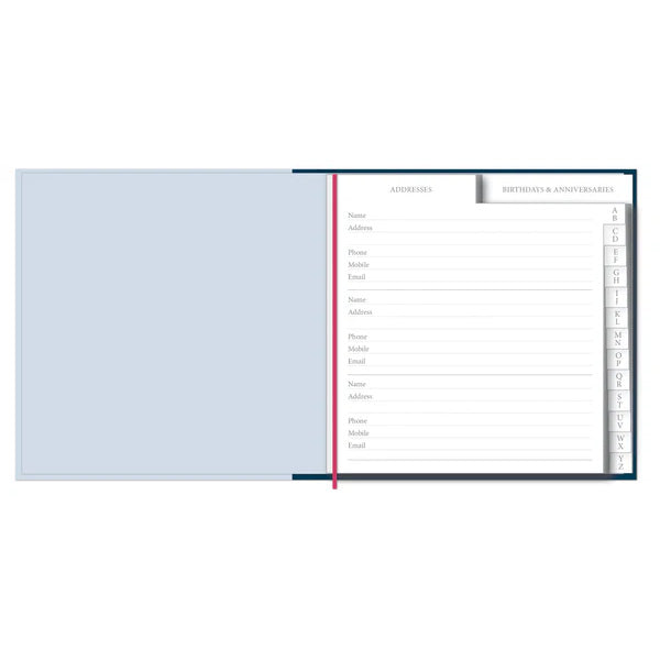 A beautiful address and birthday book from the Blue Willow range, featuring stunning florals from artist Anne Mortimer.
