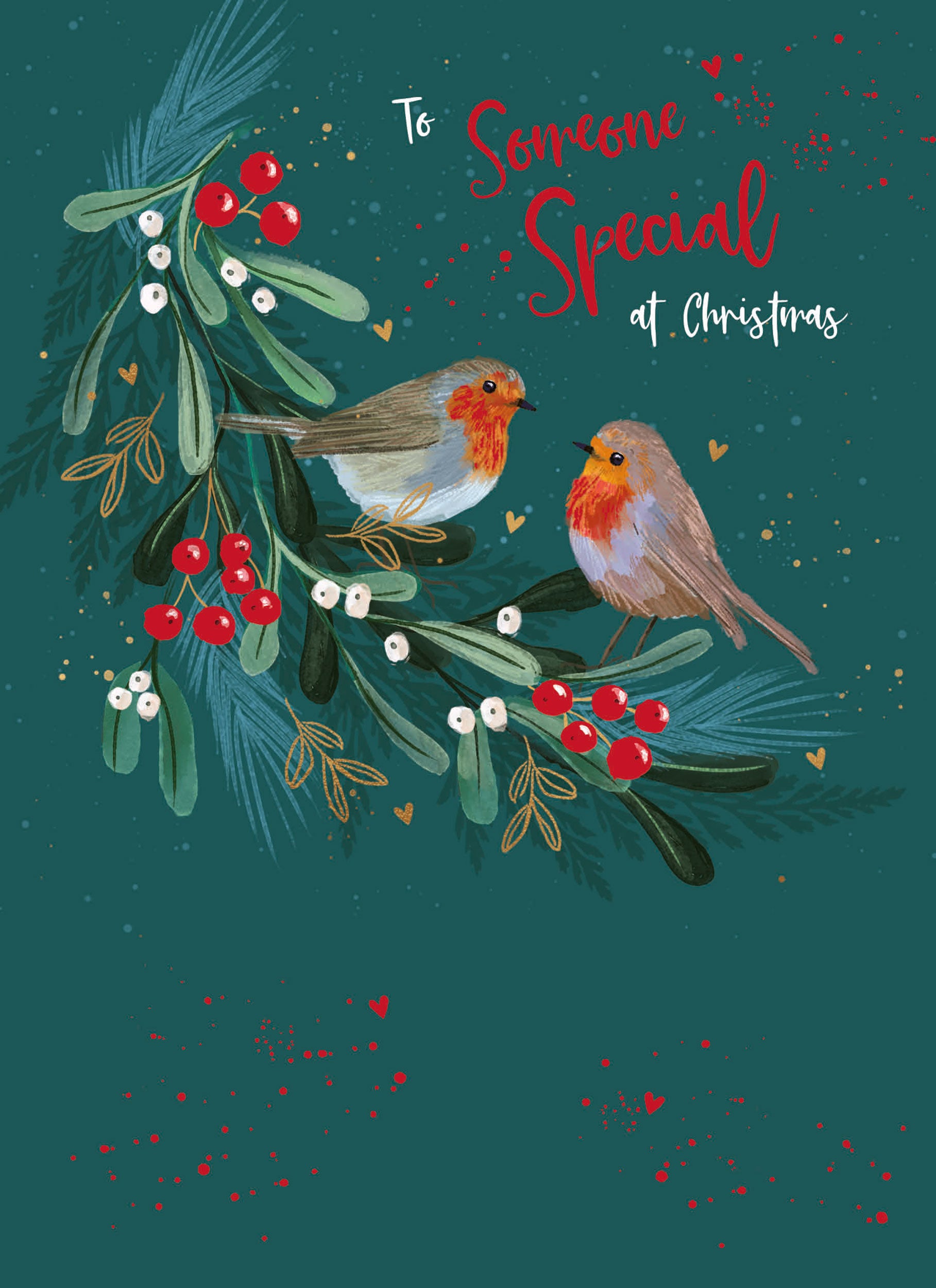 Christmas Card (Single) - Someone Special - Robins On Foliage