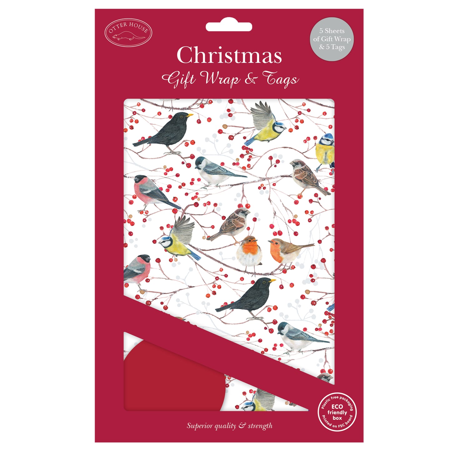 Christmas Wrap & Tags - Birds & Branches (5 Sheets & 5 Tags)