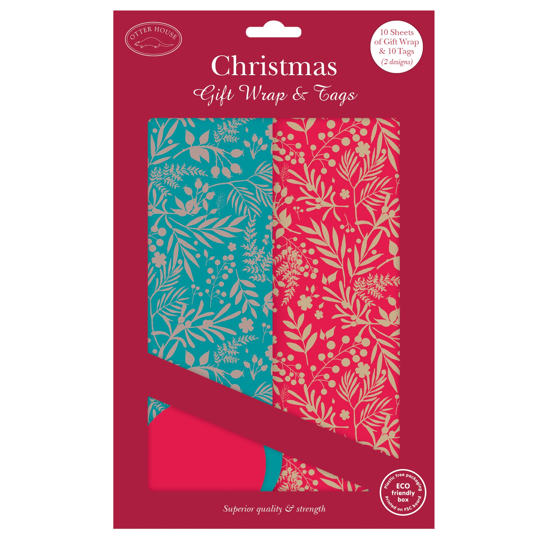 Christmas Wrap & Tags Bumper Pack - Silhouette Foliage (10 Sheets & 10 Tags)