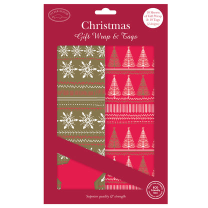 Christmas Wrap & Tags Bumper Pack - Snowflake & Winter Trees (10 Sheets & 10 Tags)