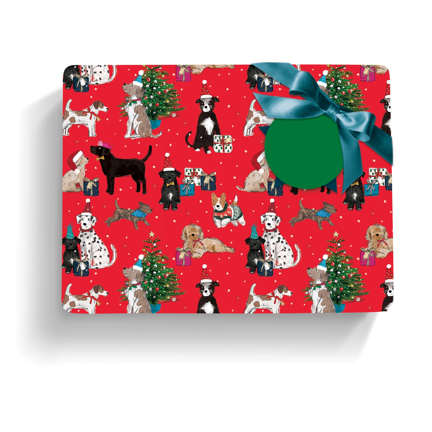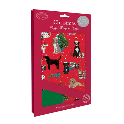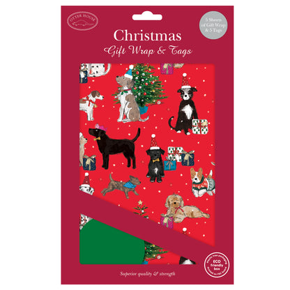 Christmas Wrap & Tags - Dogs Around the Tree (5 Sheets & 5 Tags)