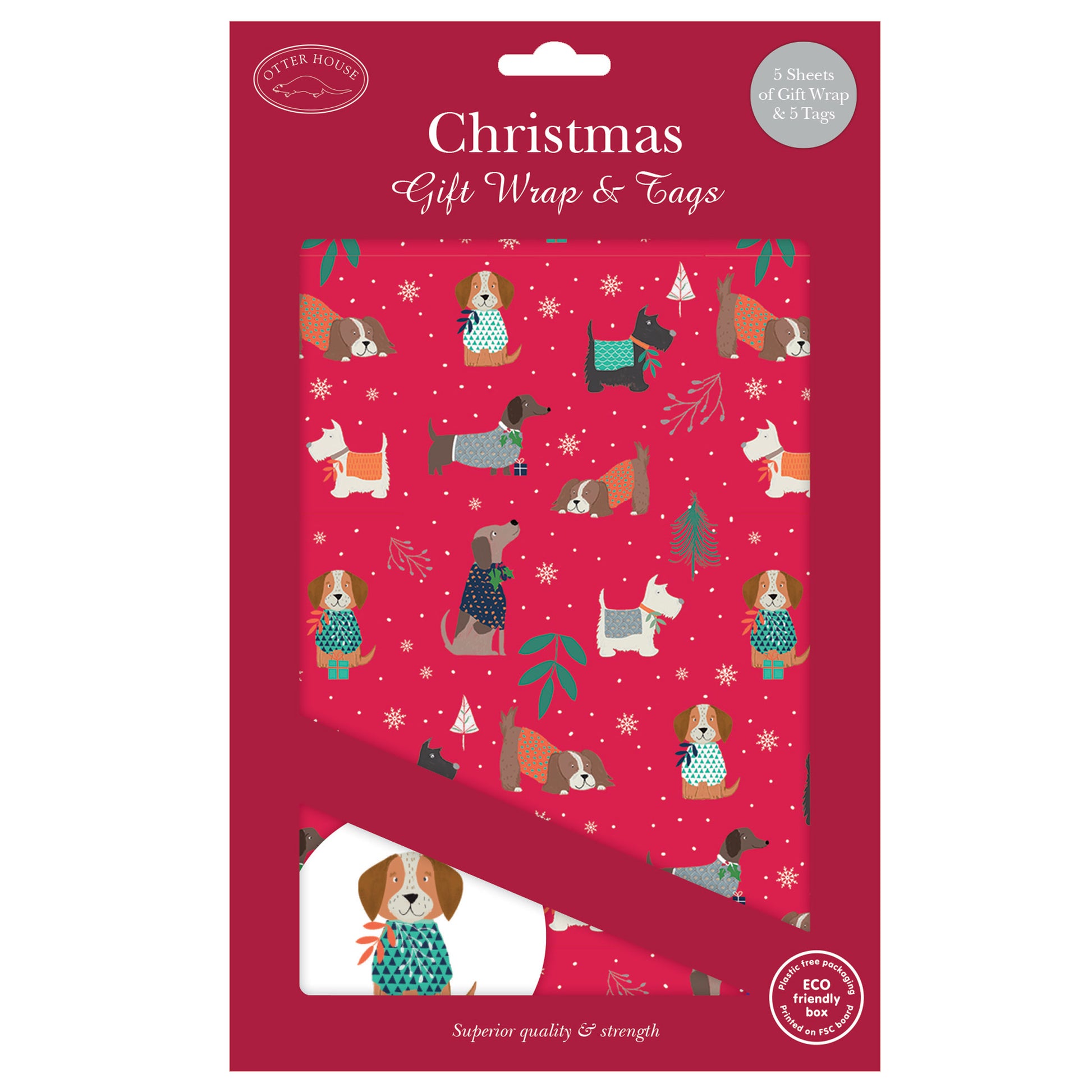Christmas Wrap & Tags - Dogs & Jumpers (5 Sheets & 5 Tags)