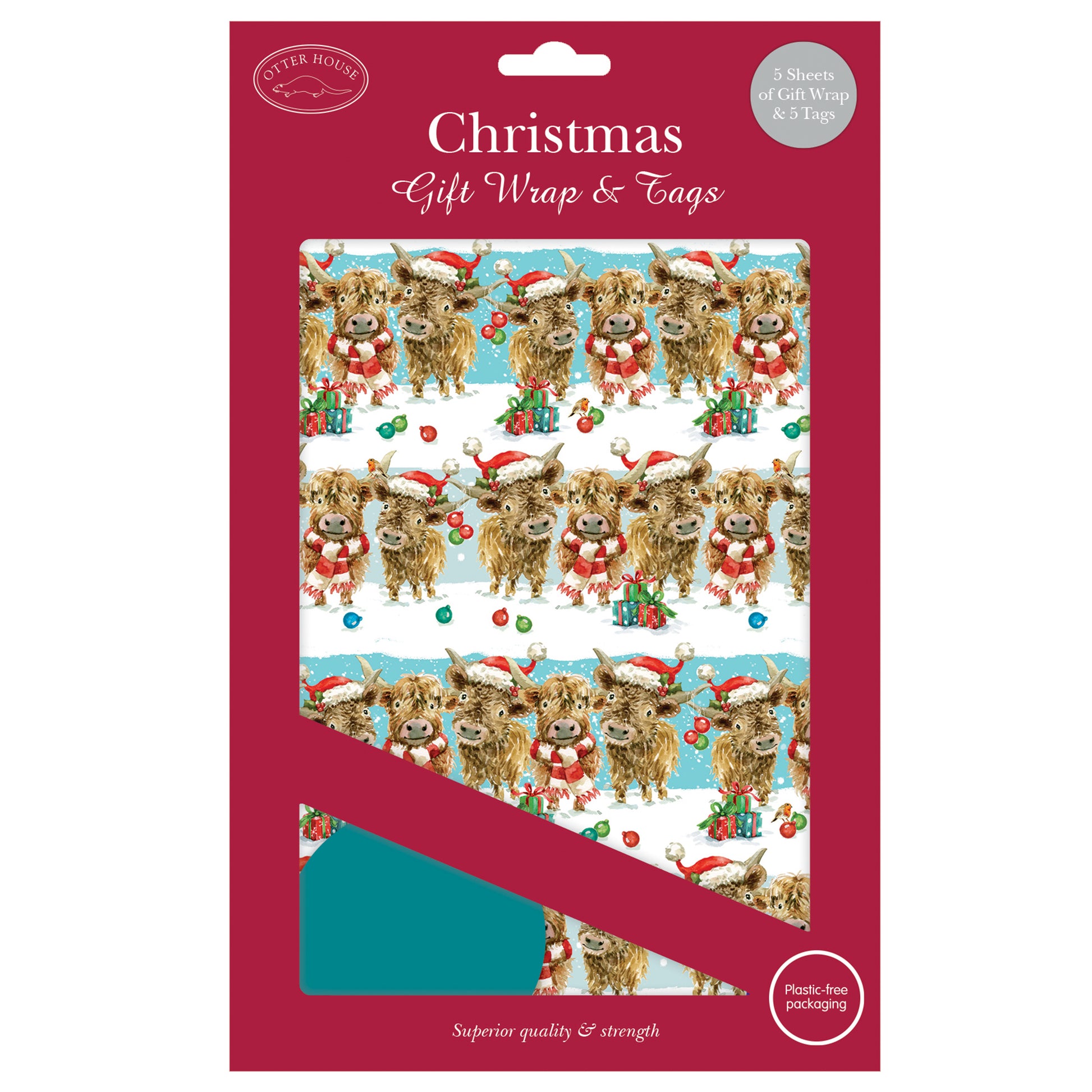 Christmas Wrap & Tags - Festive Highland Friends (5 Sheets & 5 Tags)