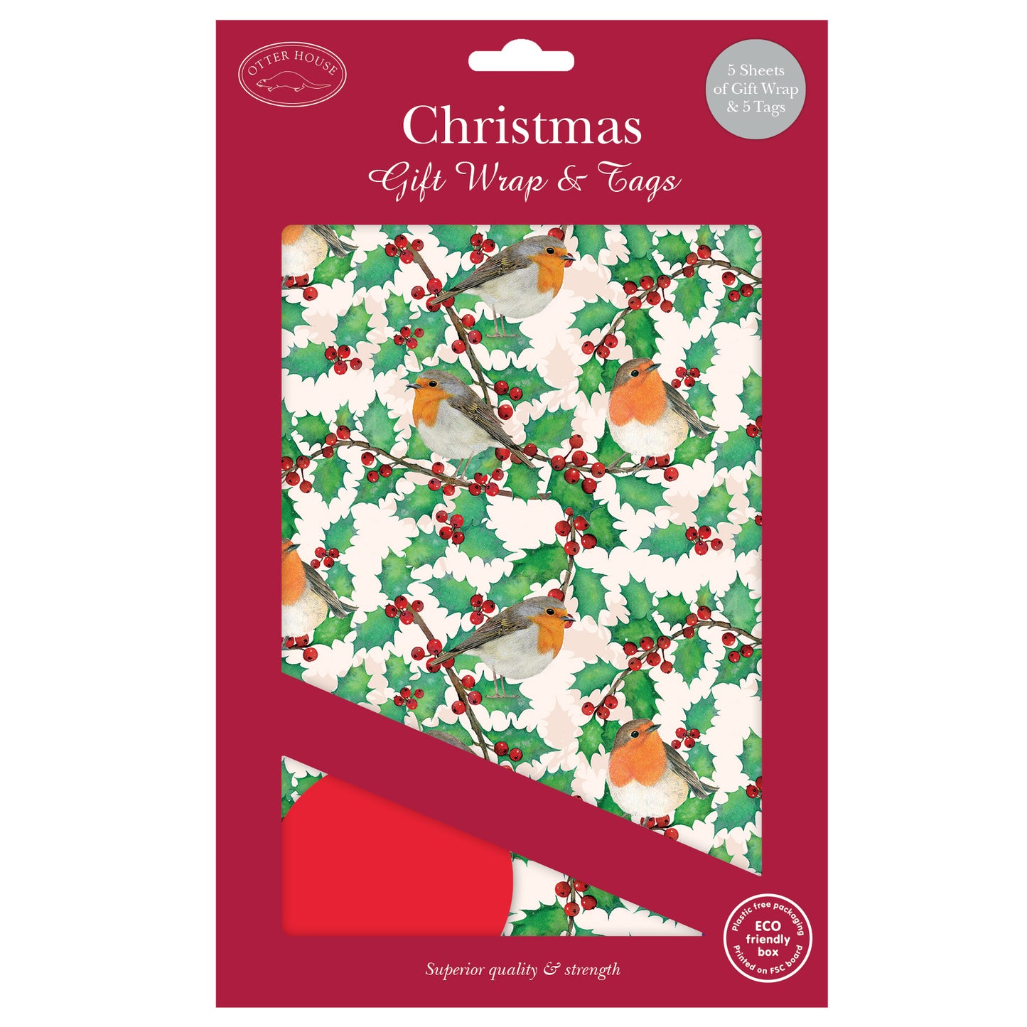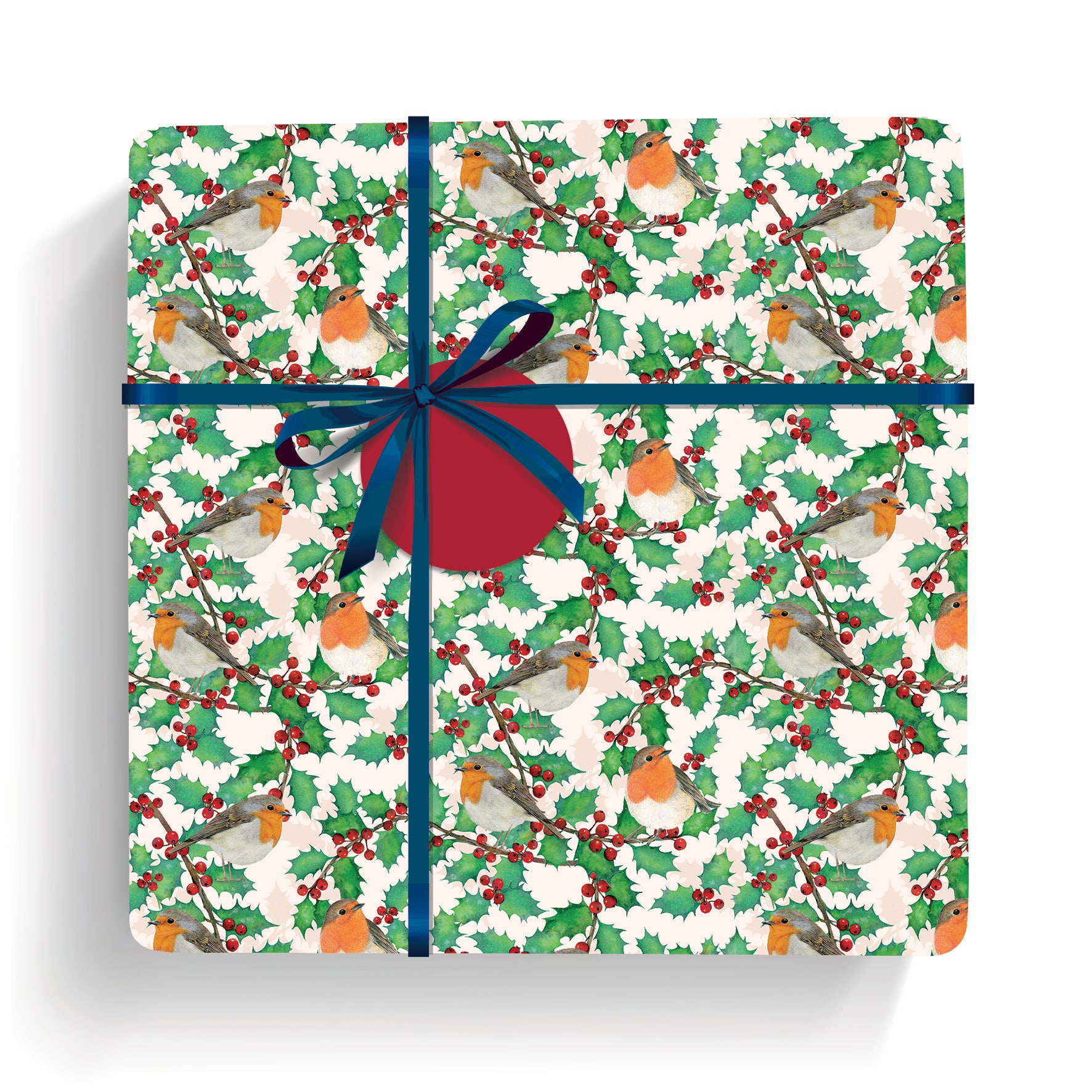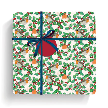Christmas Wrap & Tags - Holly, Berries & Robins (5 Sheets & 5 Tags)