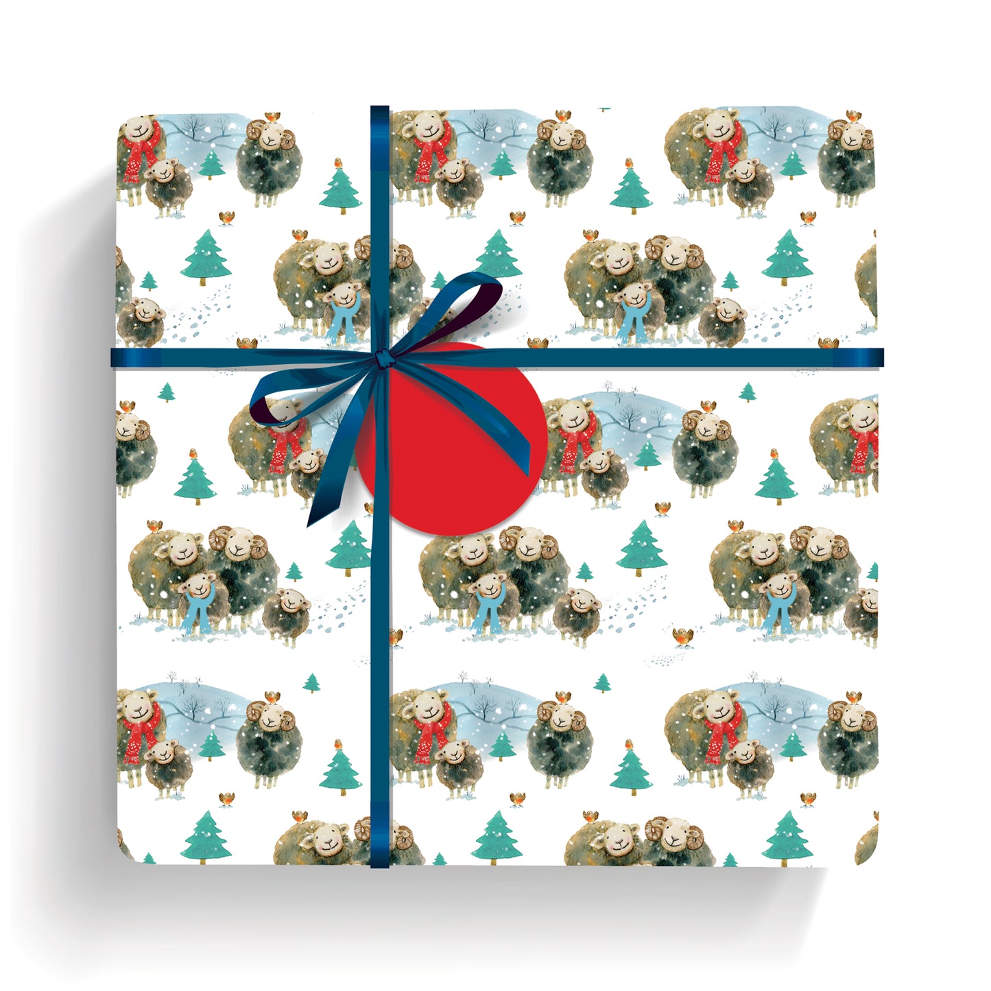 Christmas Wrap & Tags - Huddling Herdwicks (5 Sheets & 5 Tags)