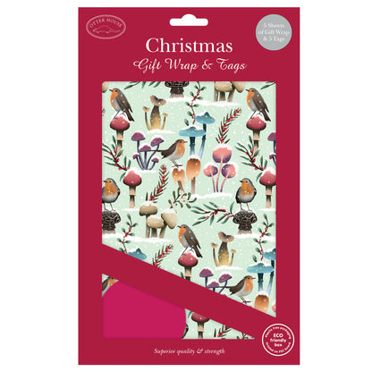 Christmas Wrap & Tags - Merry Mushrooms (5 Sheets & 5 Tags)