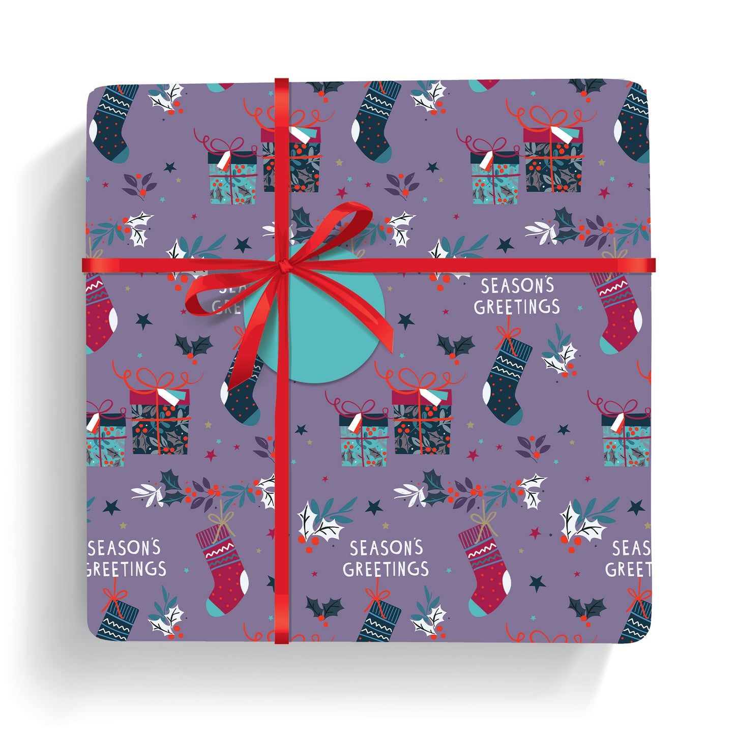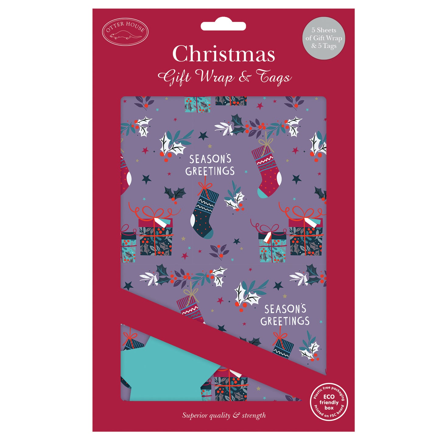 Christmas Wrap & Tags - Stockings & Presents (5 Sheets & 5 Tags)