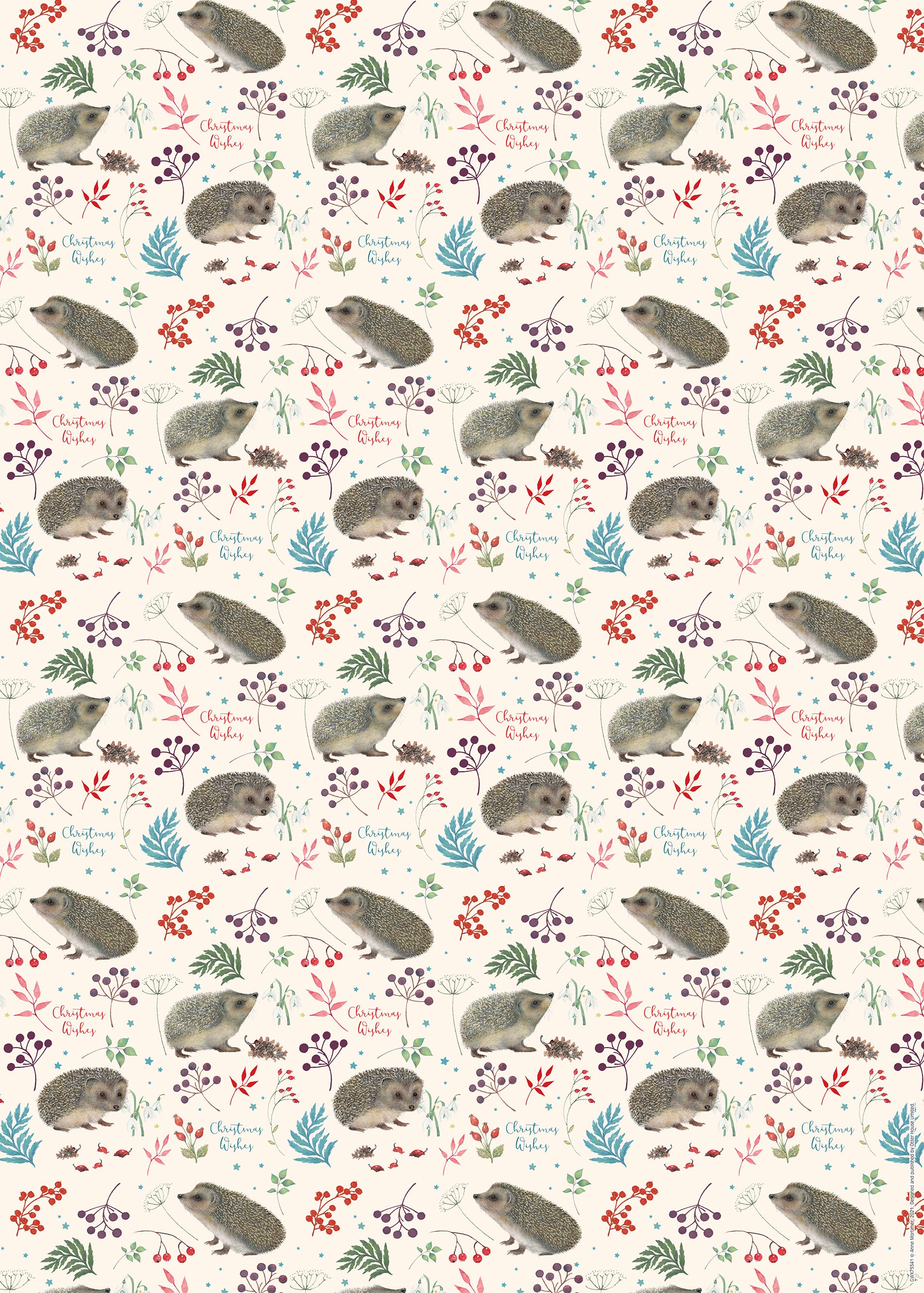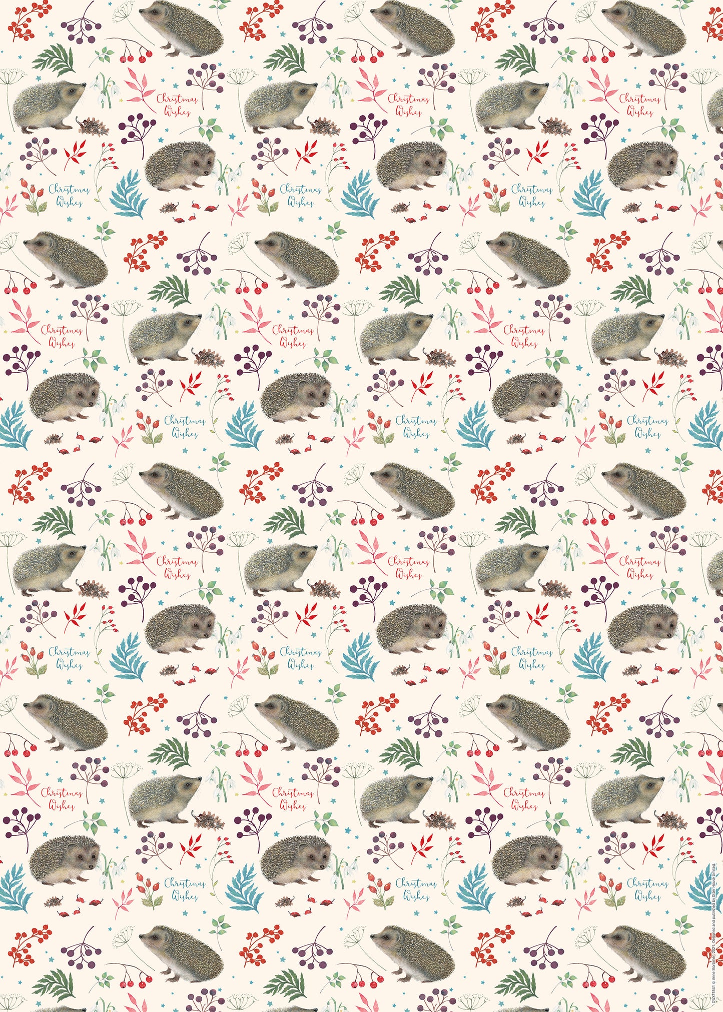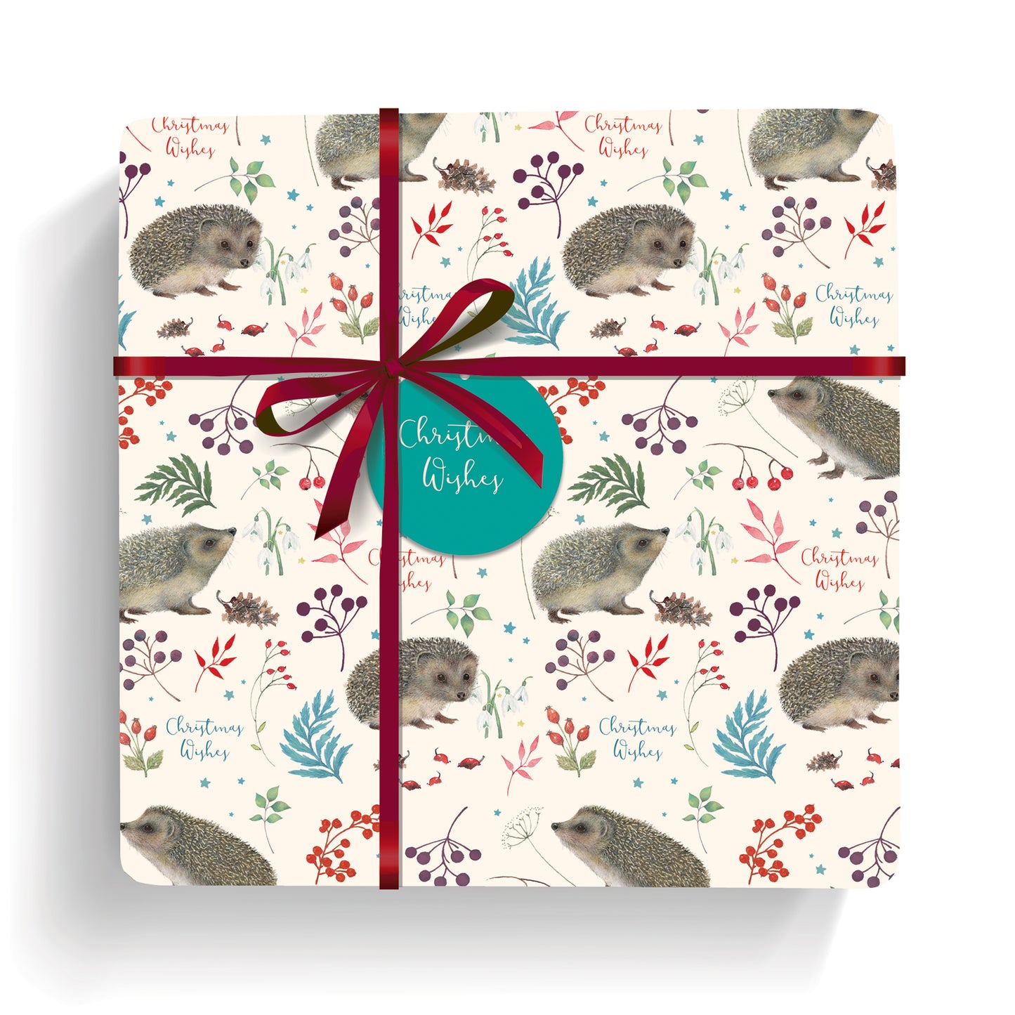 Christmas Wrap & Tags - Winter Hedgehogs (5 Sheets & 5 Tags)