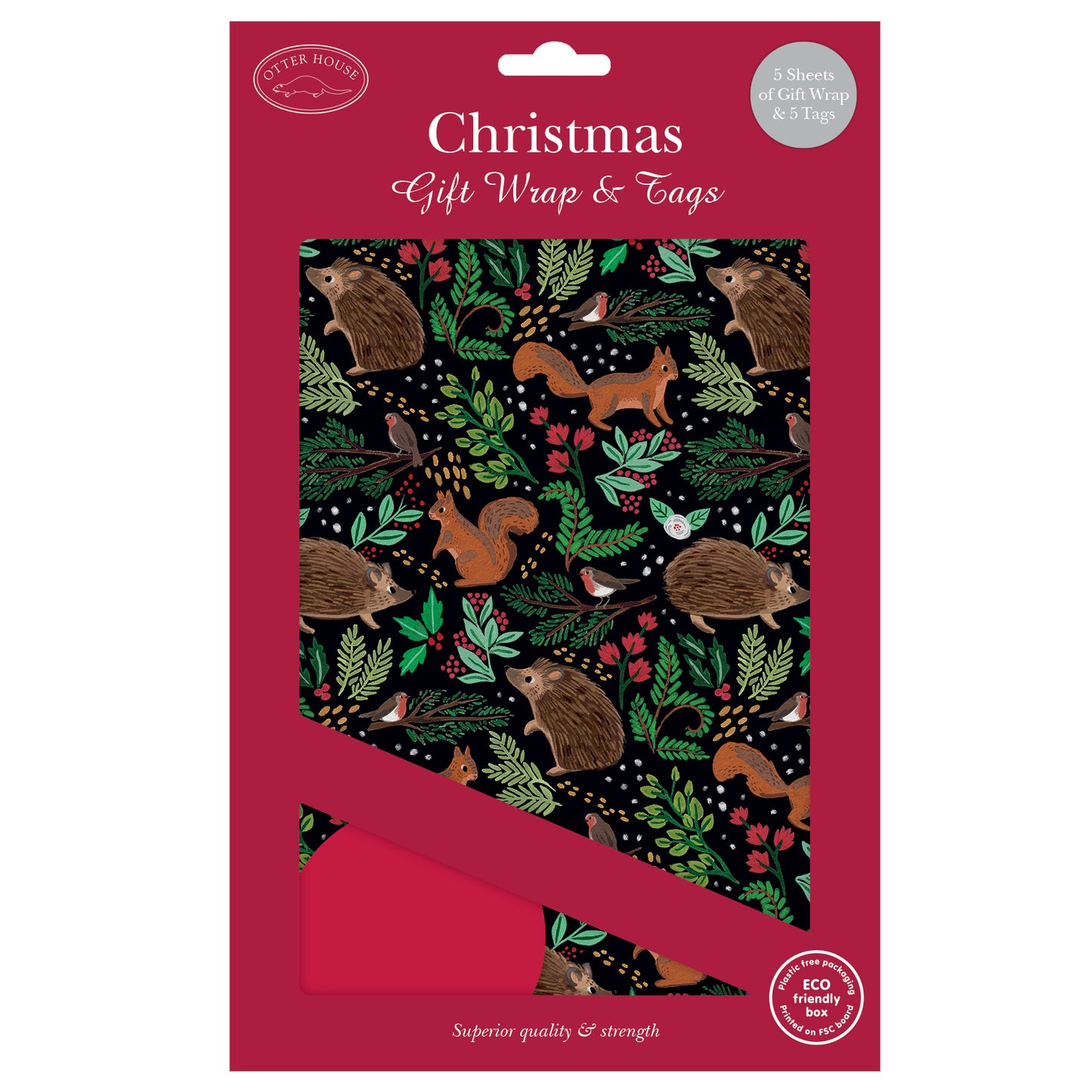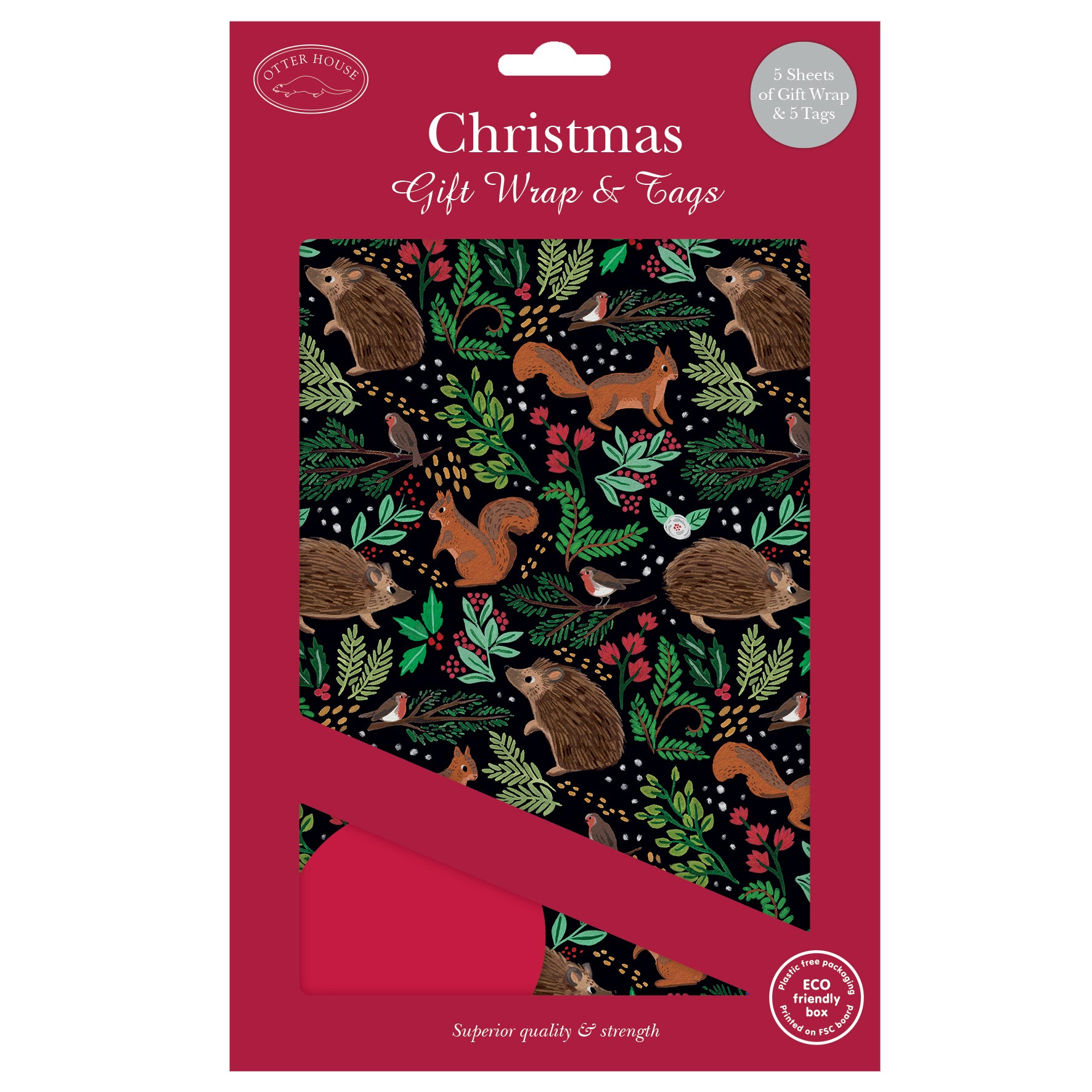 Christmas Wrap & Tags - Woodland Animals (5 Sheets & 5 Tags)