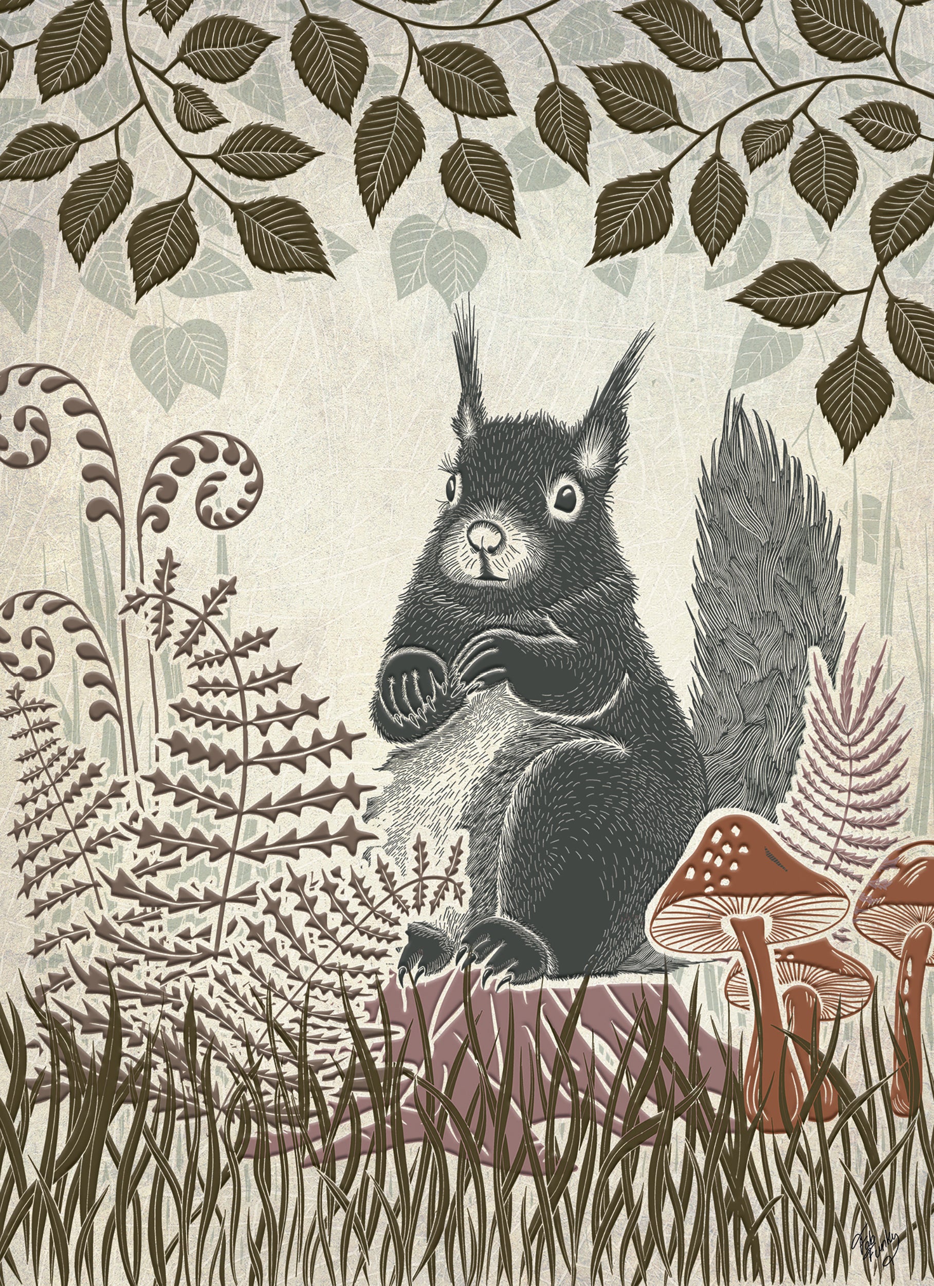 - Design: Squirrel, Floral, Flowers, Mushrooms