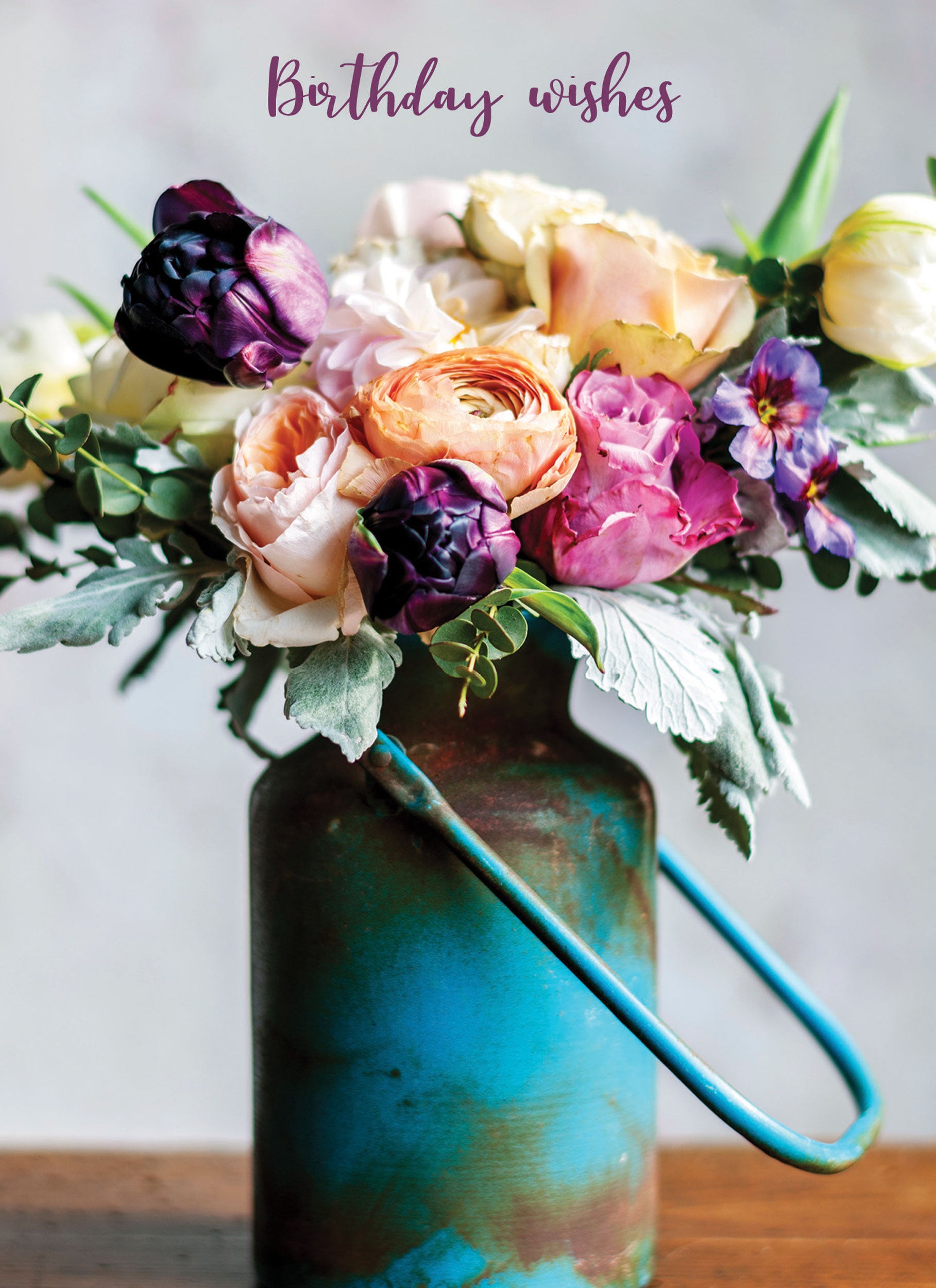 A stunning photographic birthday card featuring a vintage bouquet design.