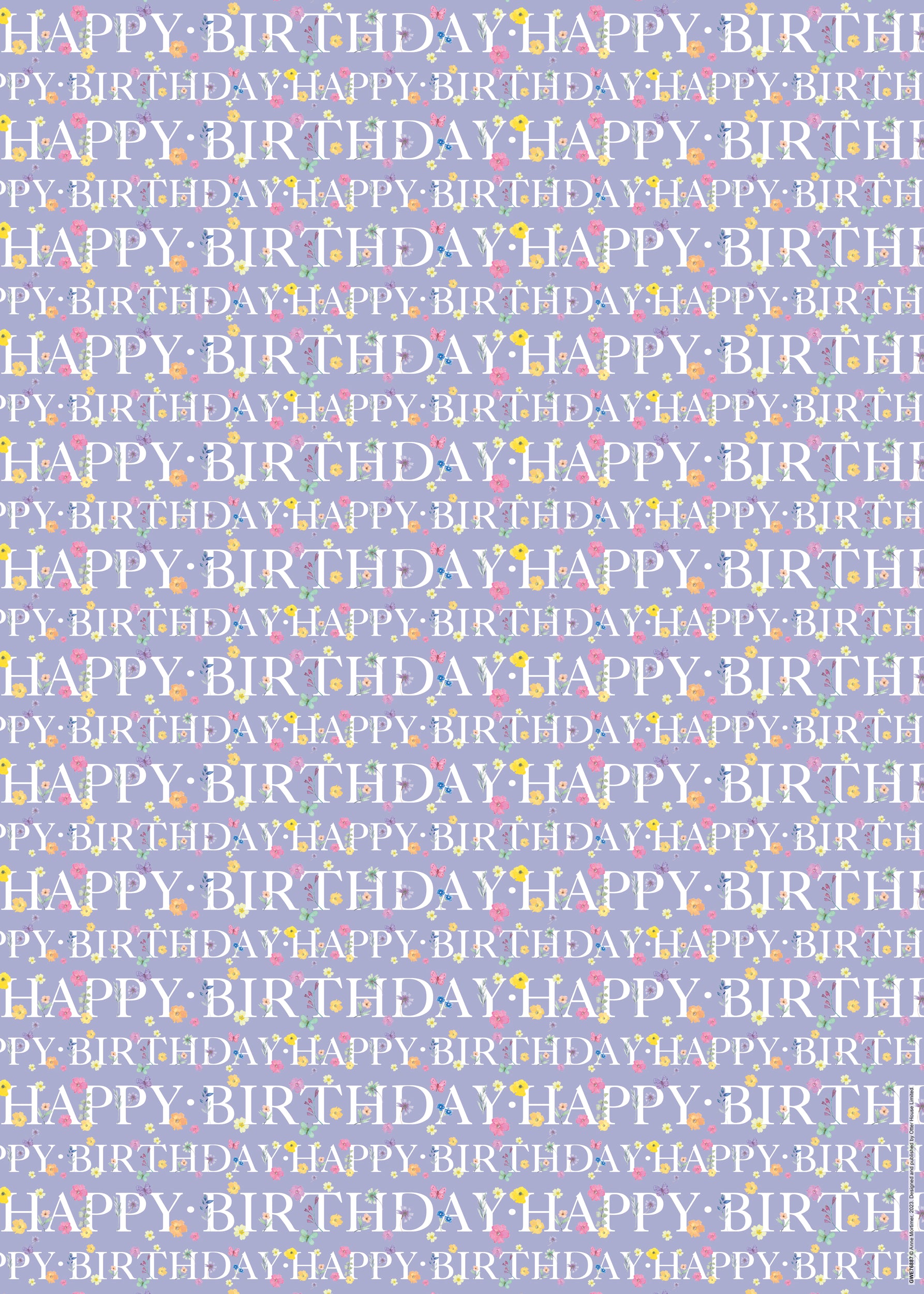 Gift Wrap & Tags - Happy Birthday Flowers (2 Sheets & 2 Tags)