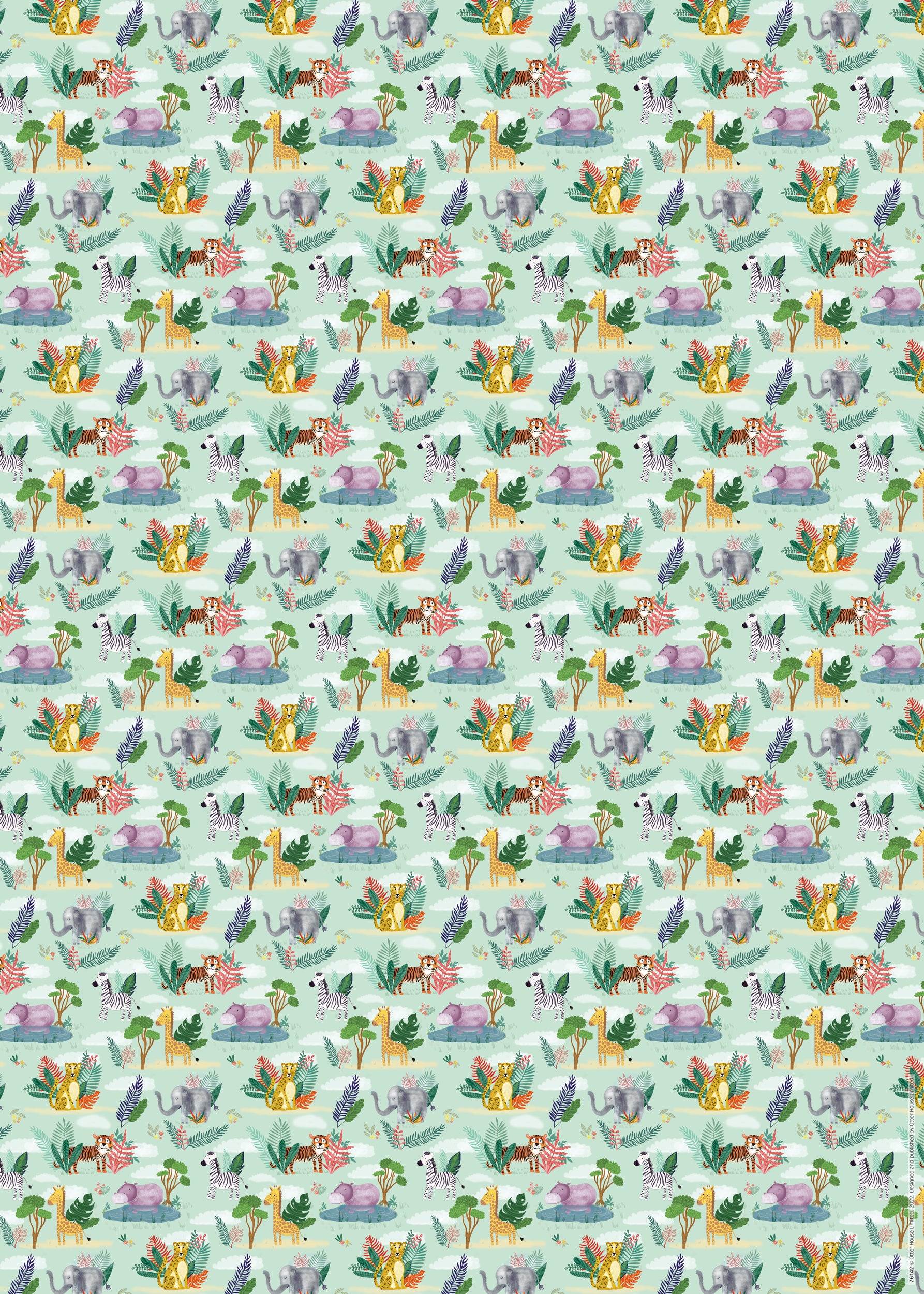 Gift Wrap & Tags - Safari Animals (2 Sheets & 2 Tags)