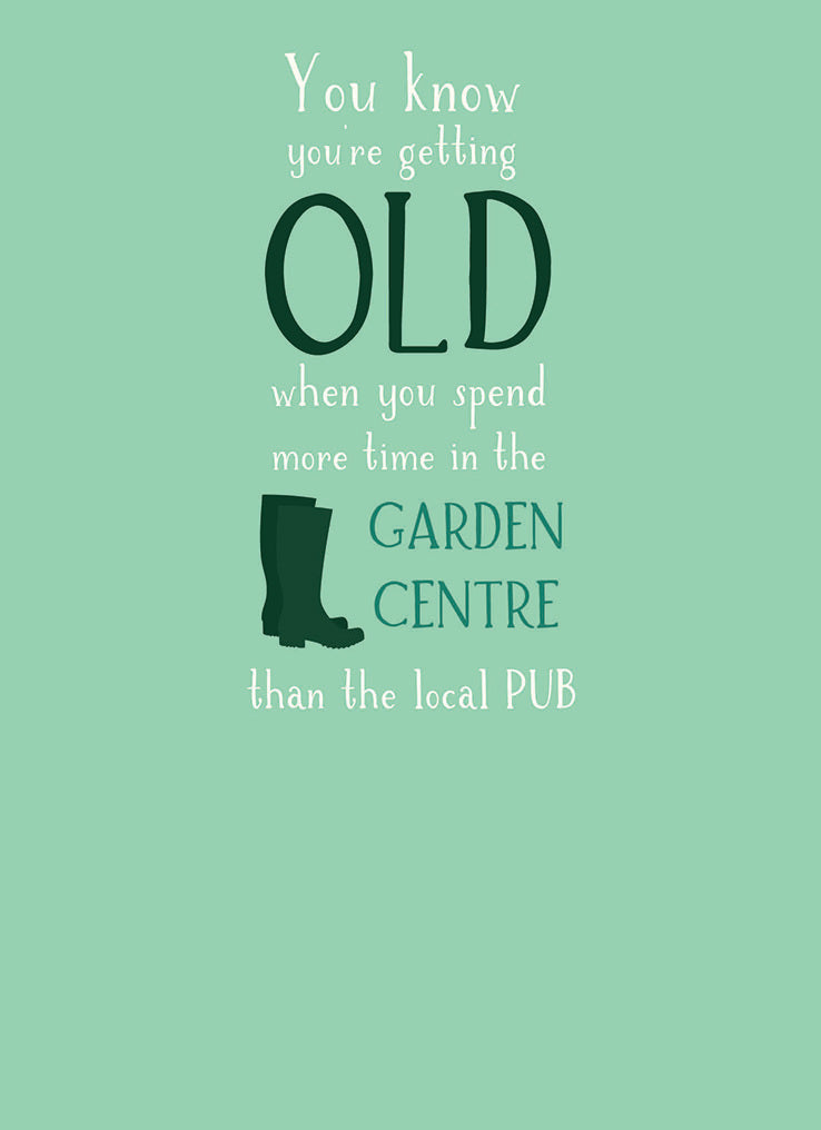 - Message On Front: You know you're getting old when you spend more time in the garden centre than the local pub