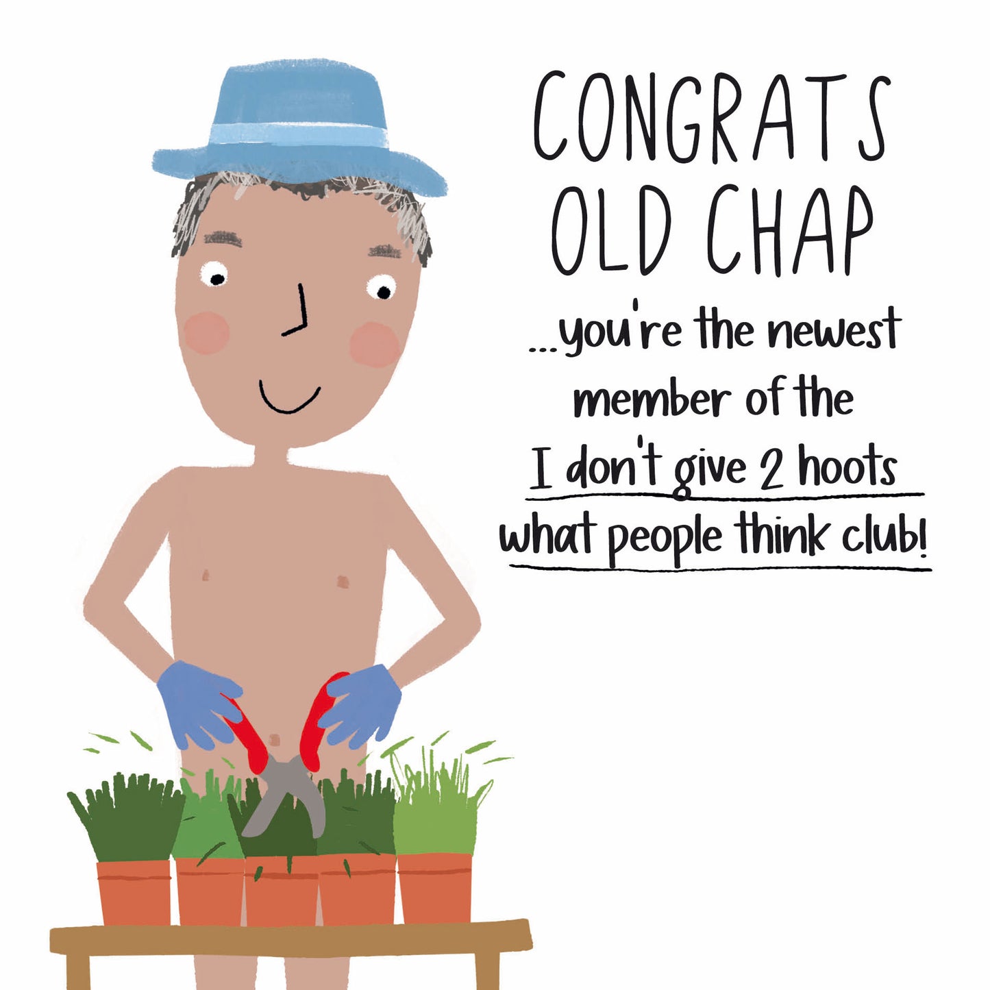 - Message On Front: CONGRATS OLD CHAP...you're the newest member of the I don't give 2 hoots what people think club!