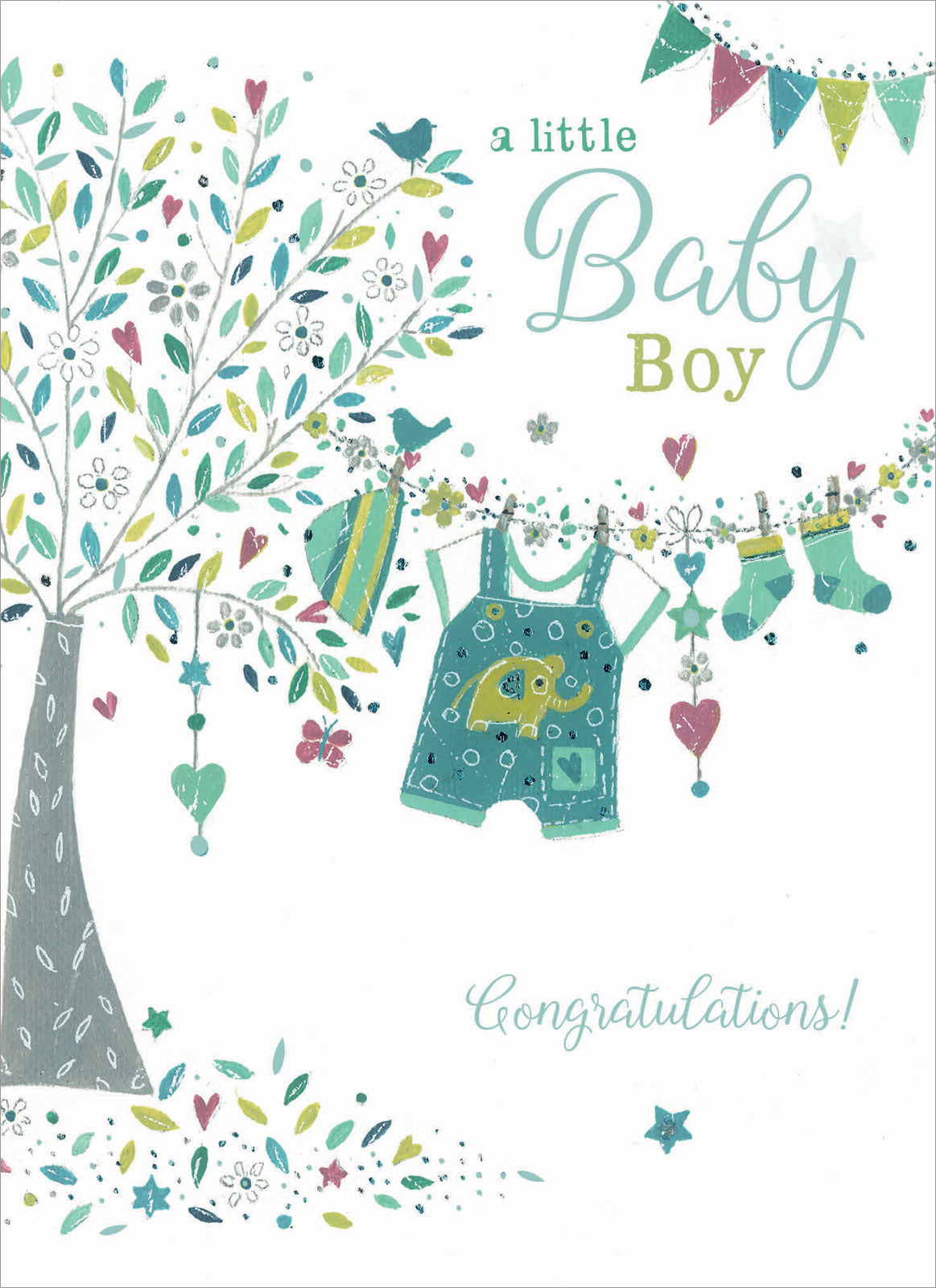 New Baby Card - Tree & Washing line (Baby Boy)