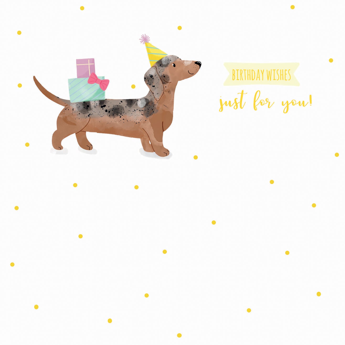 - Design: Sausage Dog, Presents, Gifts, Party Hat, Spots