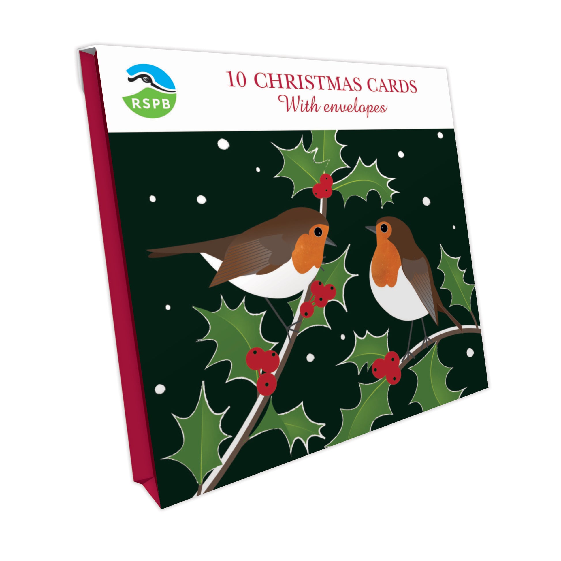Robins & Holly - RSPB Small Square Christmas 10 Card Pack