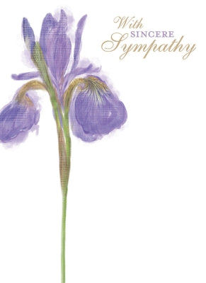 Sympathy card from Quayside Cards featuring a painted iris design.