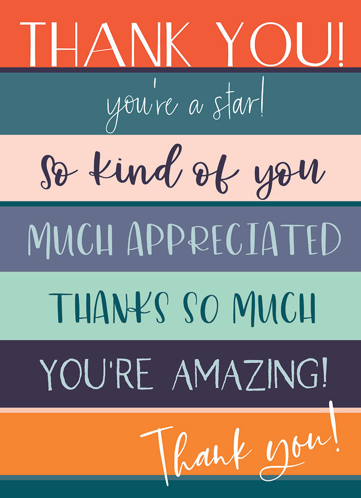 - Message On Front: Thank you! Youre a star! So kind of you much appreciated etc..