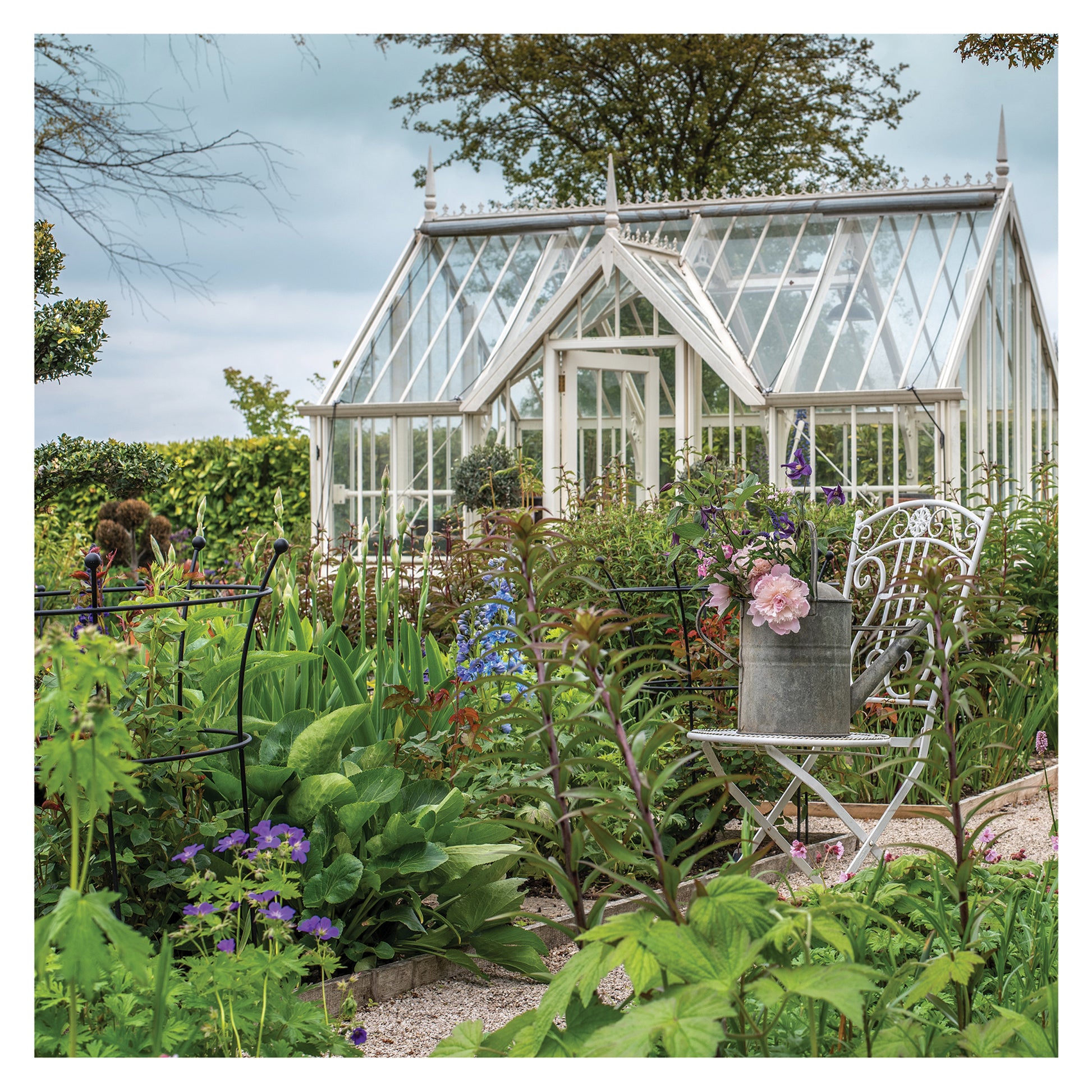 A stunning photographic greetings card featuring a pretty greenhouse.