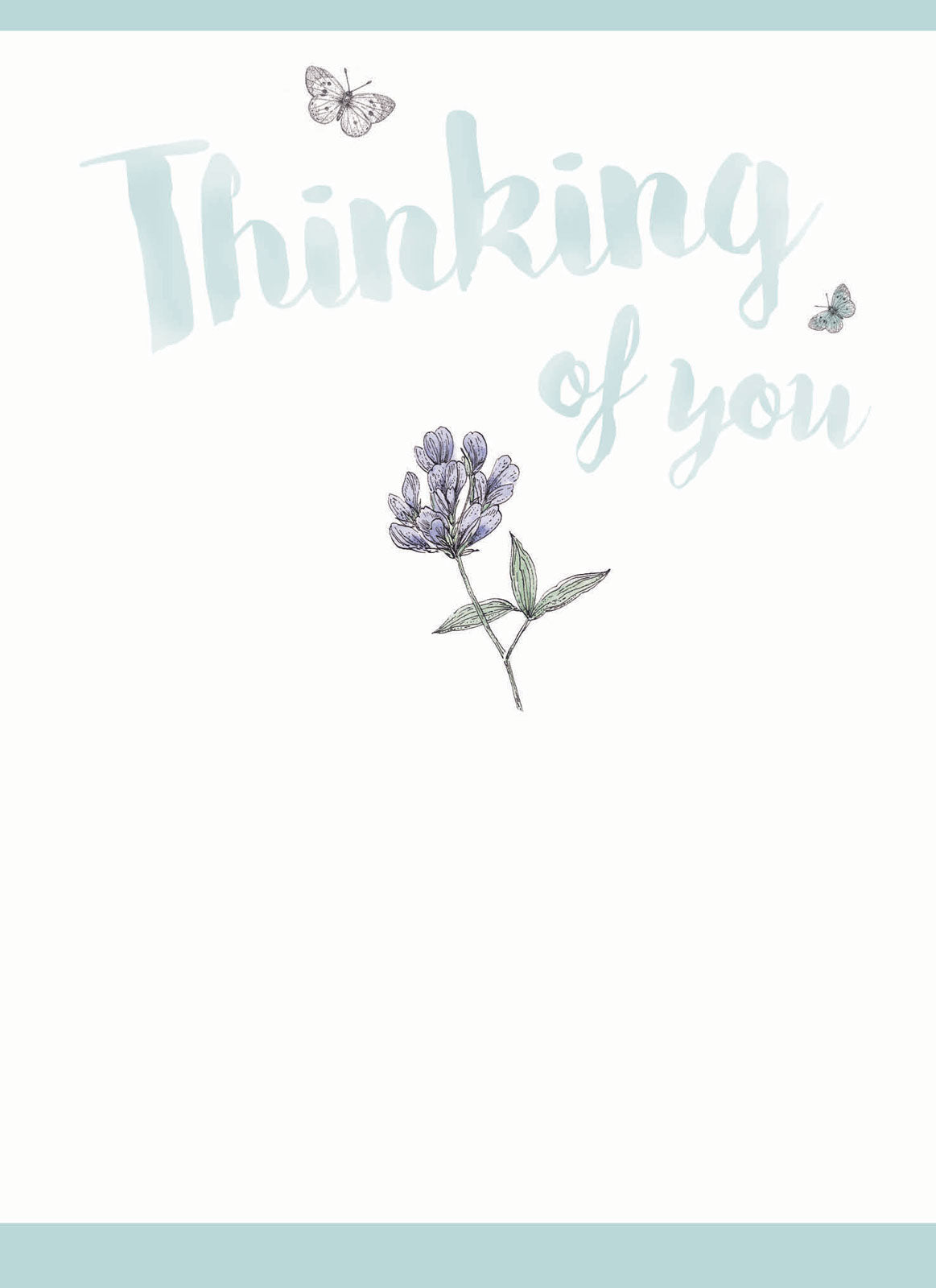 Thinking of you card from Quayside Cards featuring a flower and butterfly design.