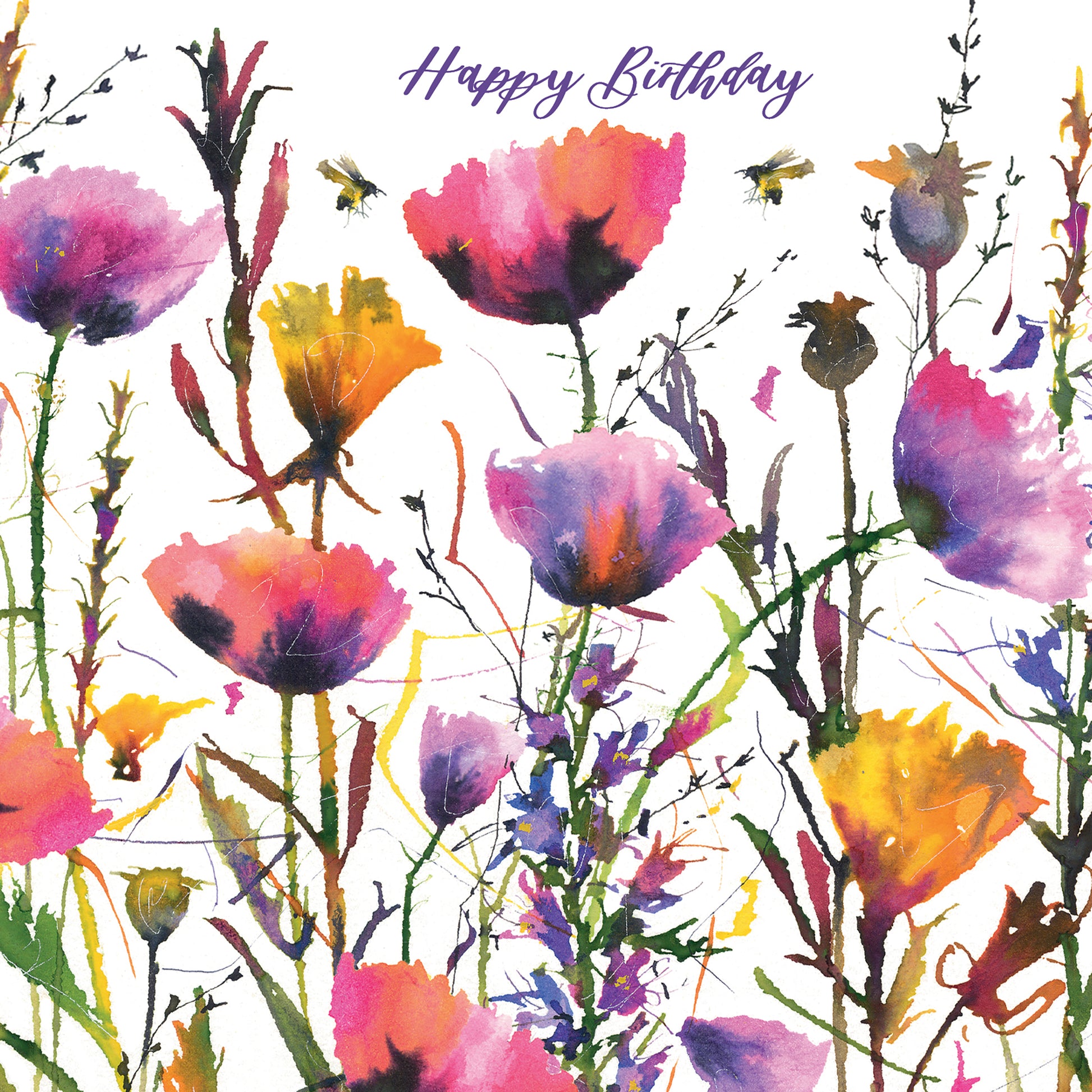 Contemporary design-led blank card with a floral images by Anne Mortimer.