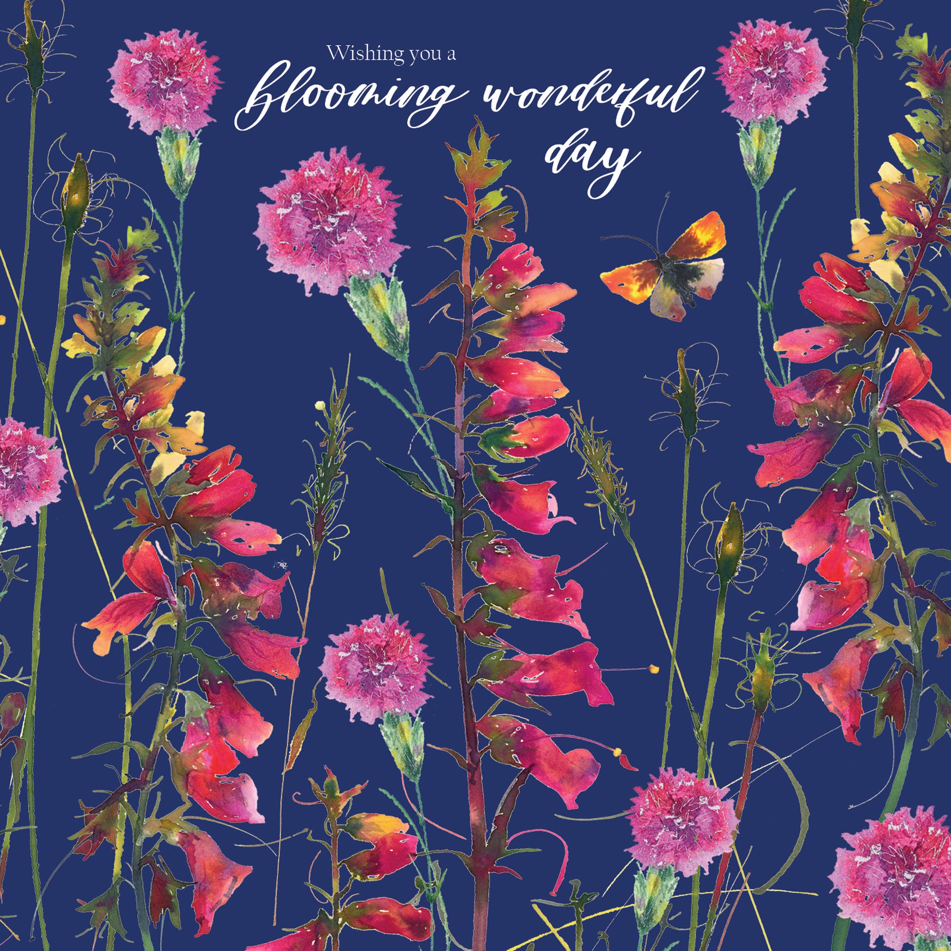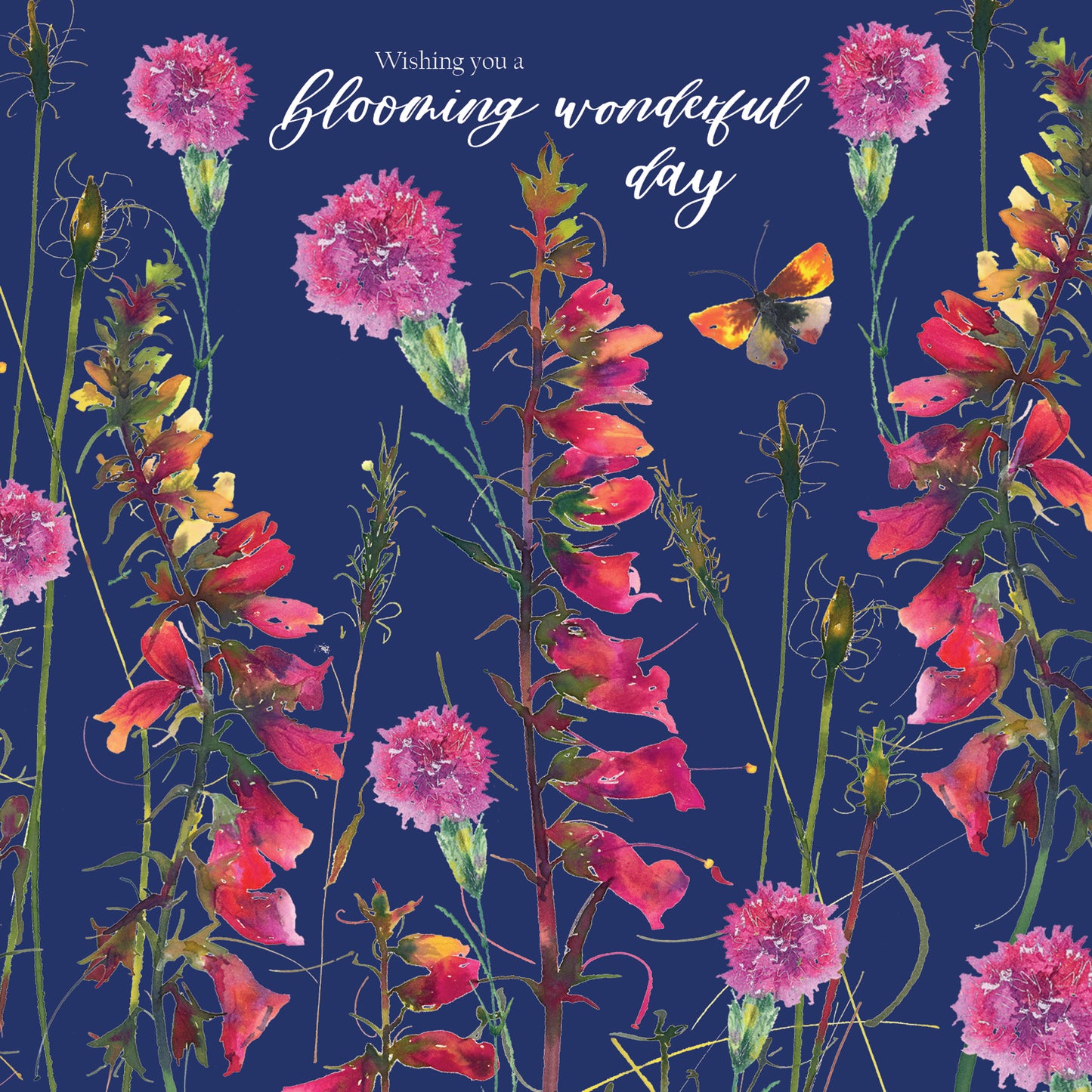 Contemporary design-led blank card with a floral images by Anne Mortimer.